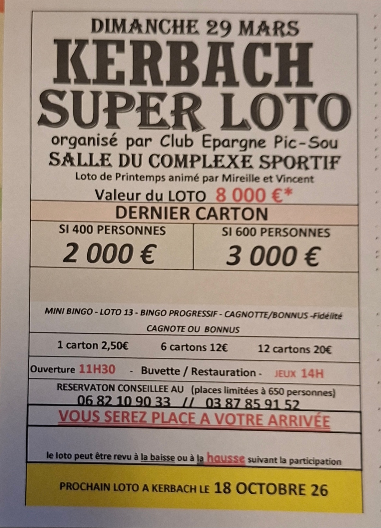 Valeur du LOTO 8 000 euros si 600 personnes