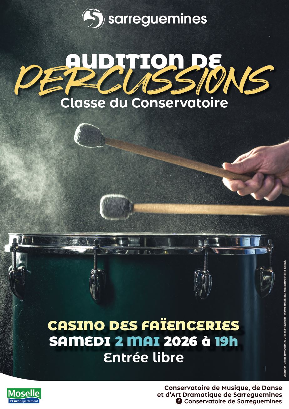 Laissez-vous emporter par le rythme ! Les élèves de la classe de percussions du Conservatoire vous donnent rendez-vous pour une soirée pleine d’énergie et de vibrations le samedi 2 mai à 19h au Casino des Faïenceries de Sarreguemines.