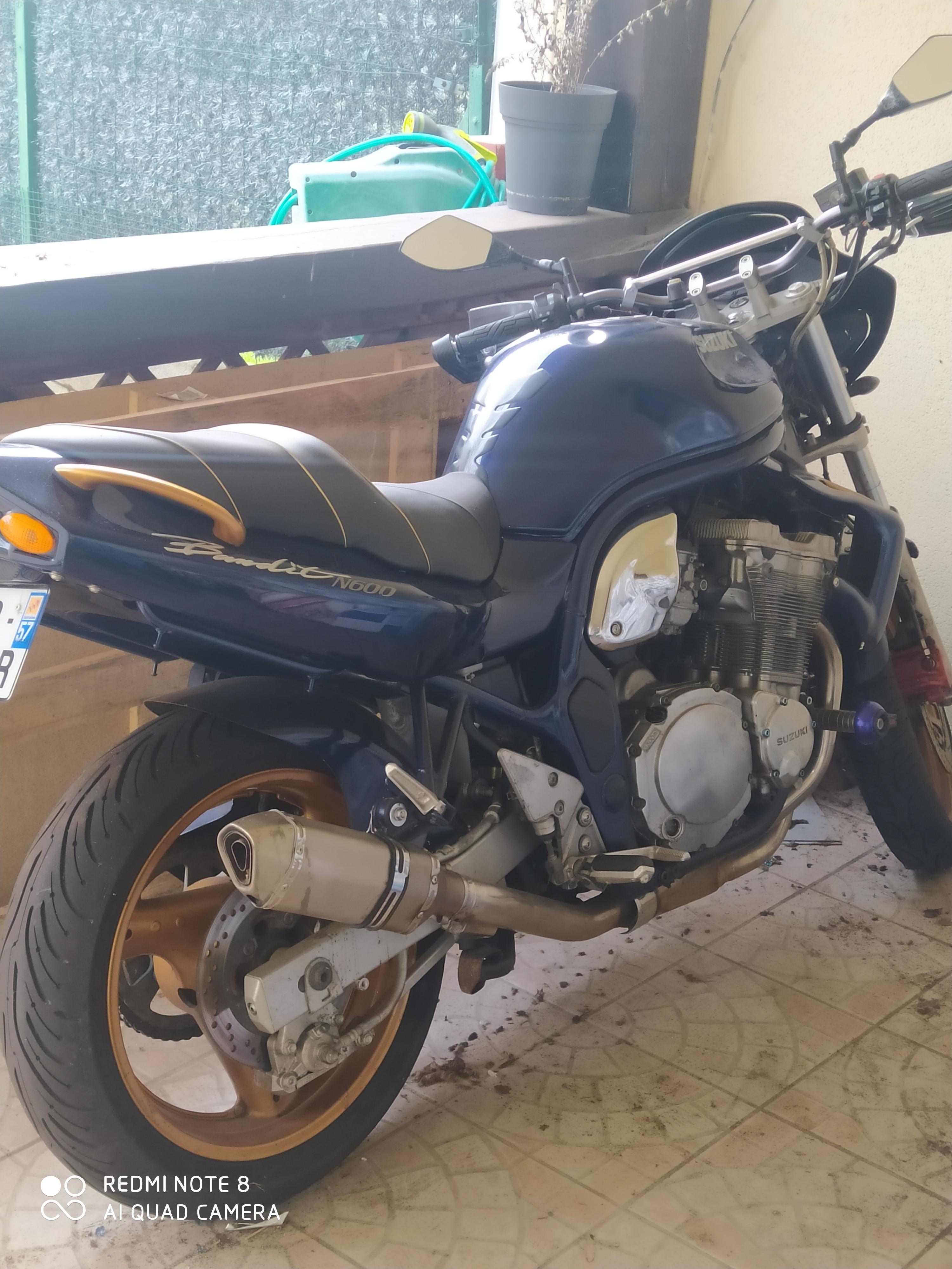 1 moto suzuki 600 Bandit ; an.1996 ; km : 60000; carter huile fissuré ; tournante ; pneu AR neuf avec CG ; prix : 500 euros.