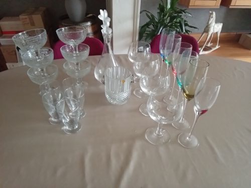 À vendre - Lot de verres, coupes à dessert, carafe etc