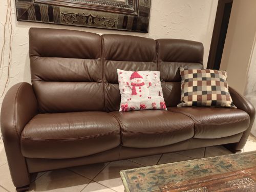 À vendre - Fauteuil réglable en simili cuir de couleur marron en bon état