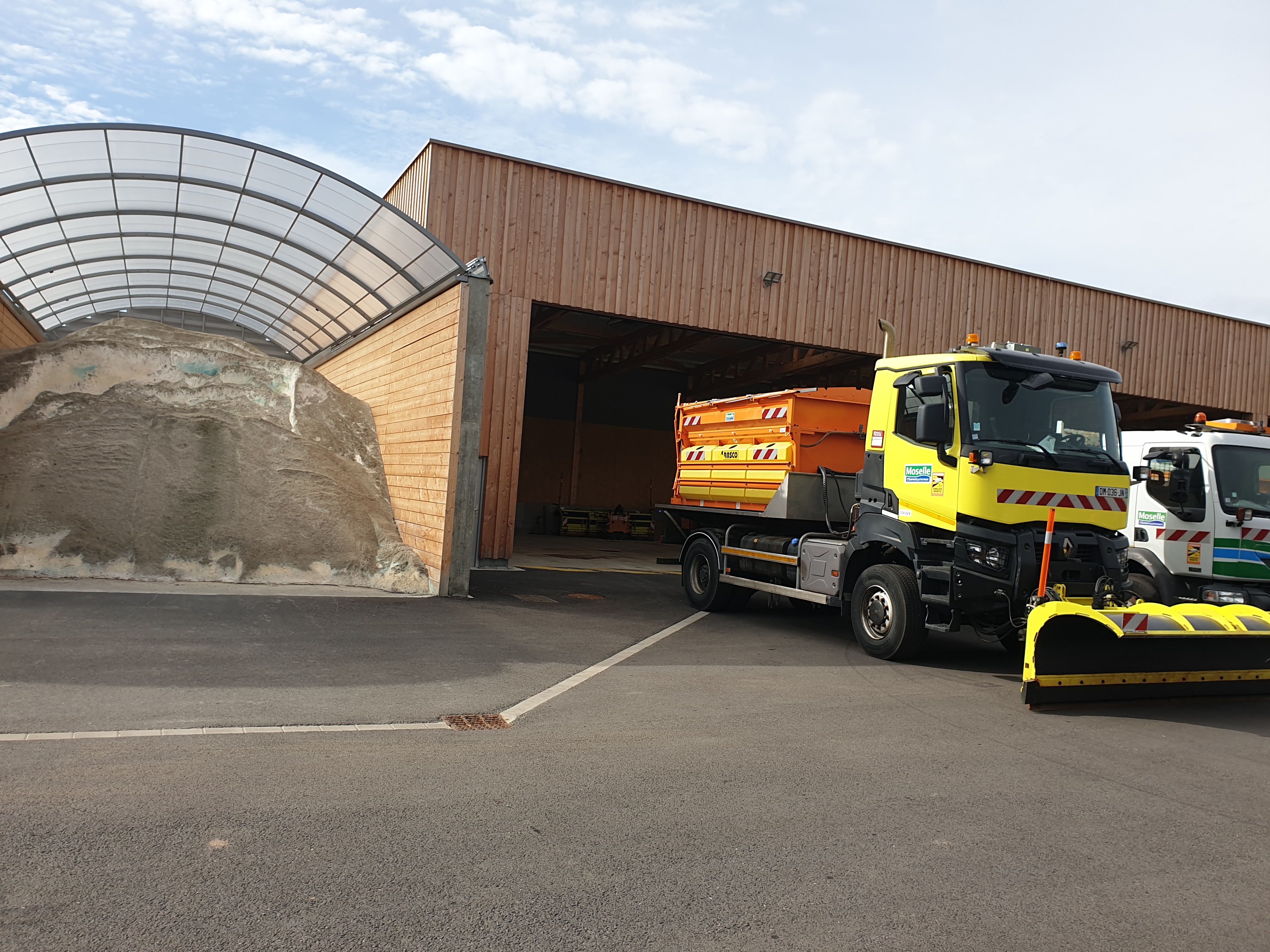 On a été doté d’un super équipement de travail et tout le monde est content de pouvoir travailler dans un environnement de ce type-là. Il y a la grande aire de stockage, il y a le lieu de vie pour les agents qui est quand même confortable. On a le garage pour les camions donc tous nos véhicules sont à l’abri. Il y a le stockage de sel et la fabrication de saumure qui sont des éléments indispensables à la viabilité hivernale.