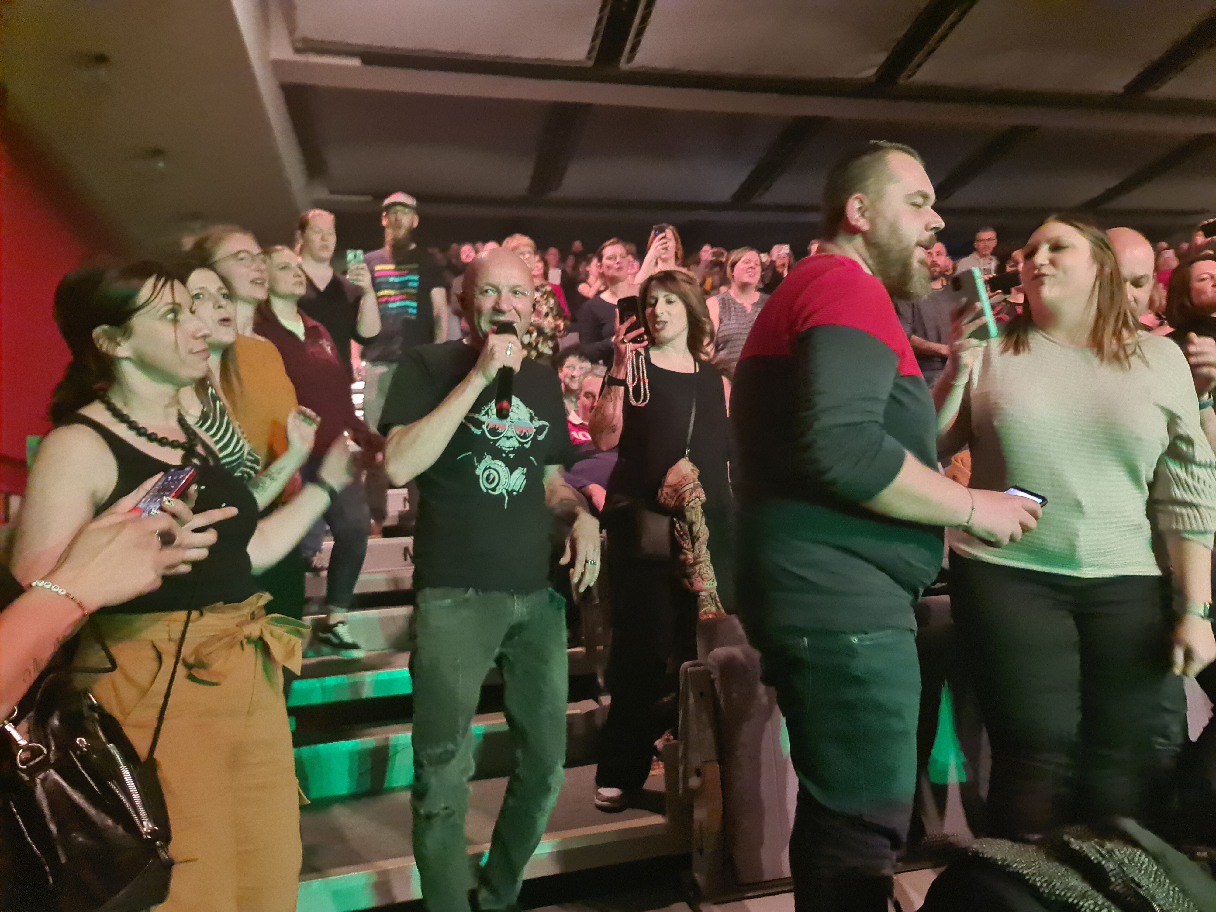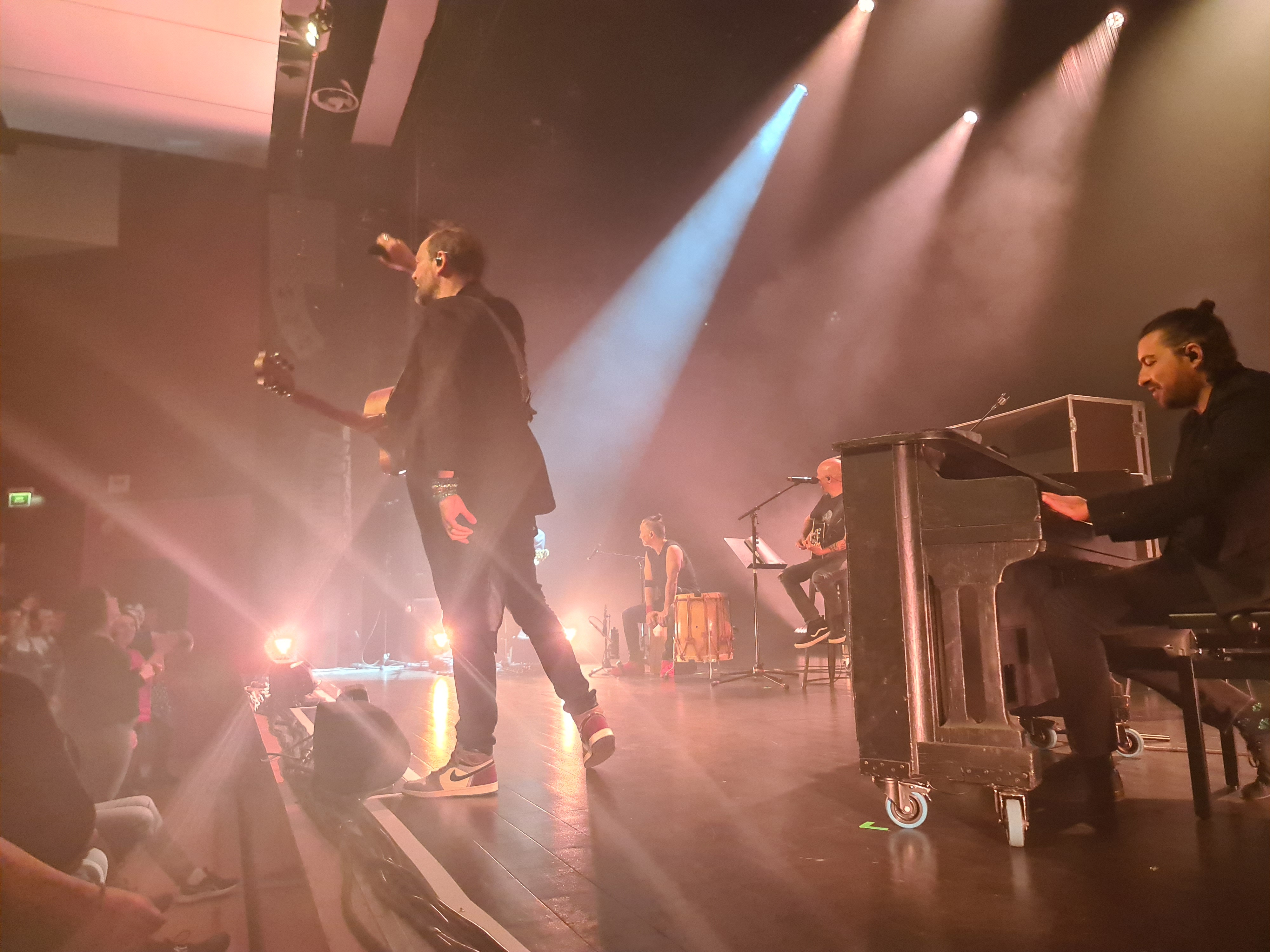 Ce soir le concert affiche complet en configuration assise, même si le public s'est rapidement levé... Le groupe qui fête ses 28 ans cette année a enchaîné les titres pendant plus de 2h30 en n'hésitant pas à se déplacer entre les spectateurs.