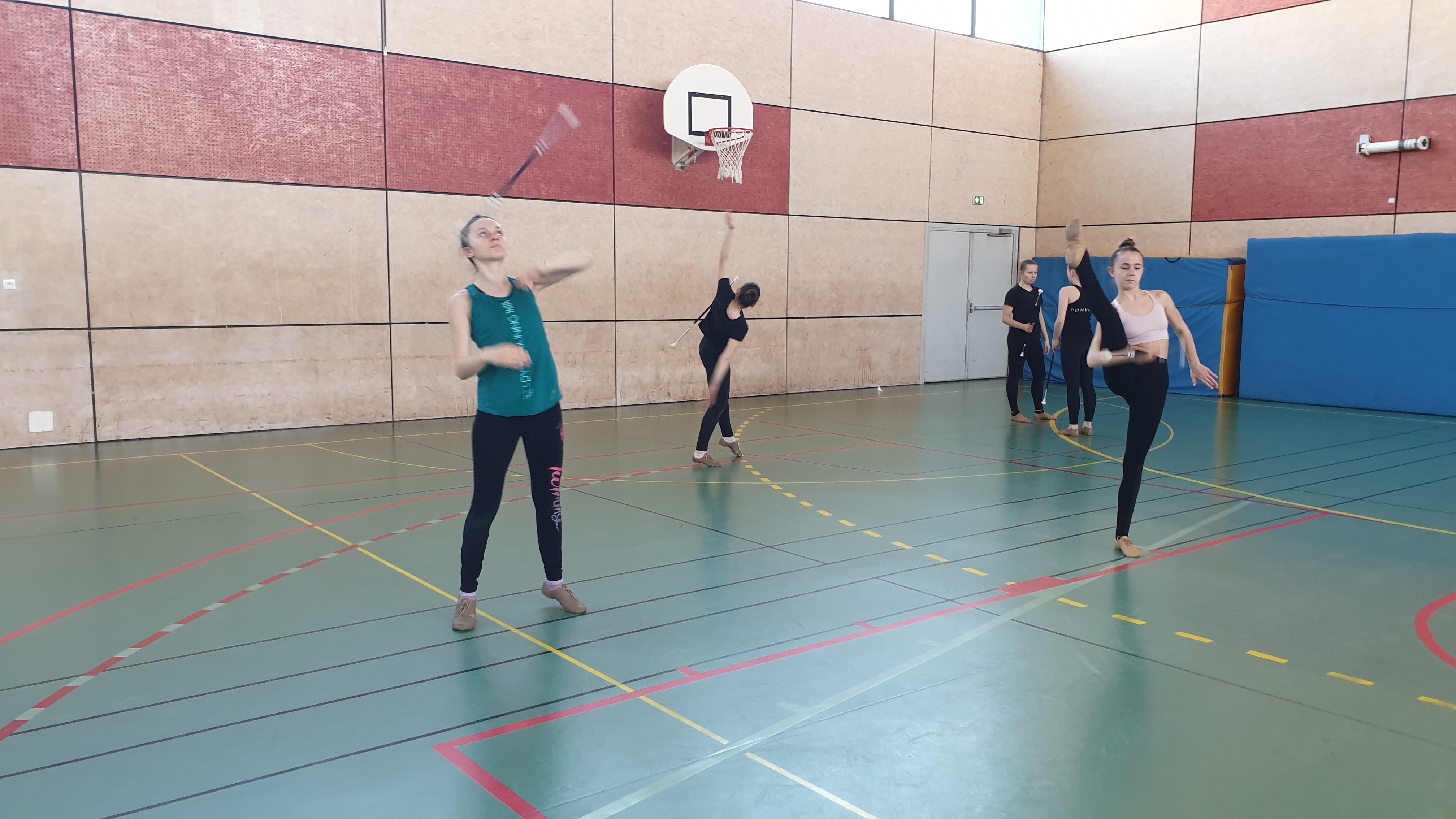 Au fond du gymnase, Emma, 18 ans, pratique le 3 bâtons.