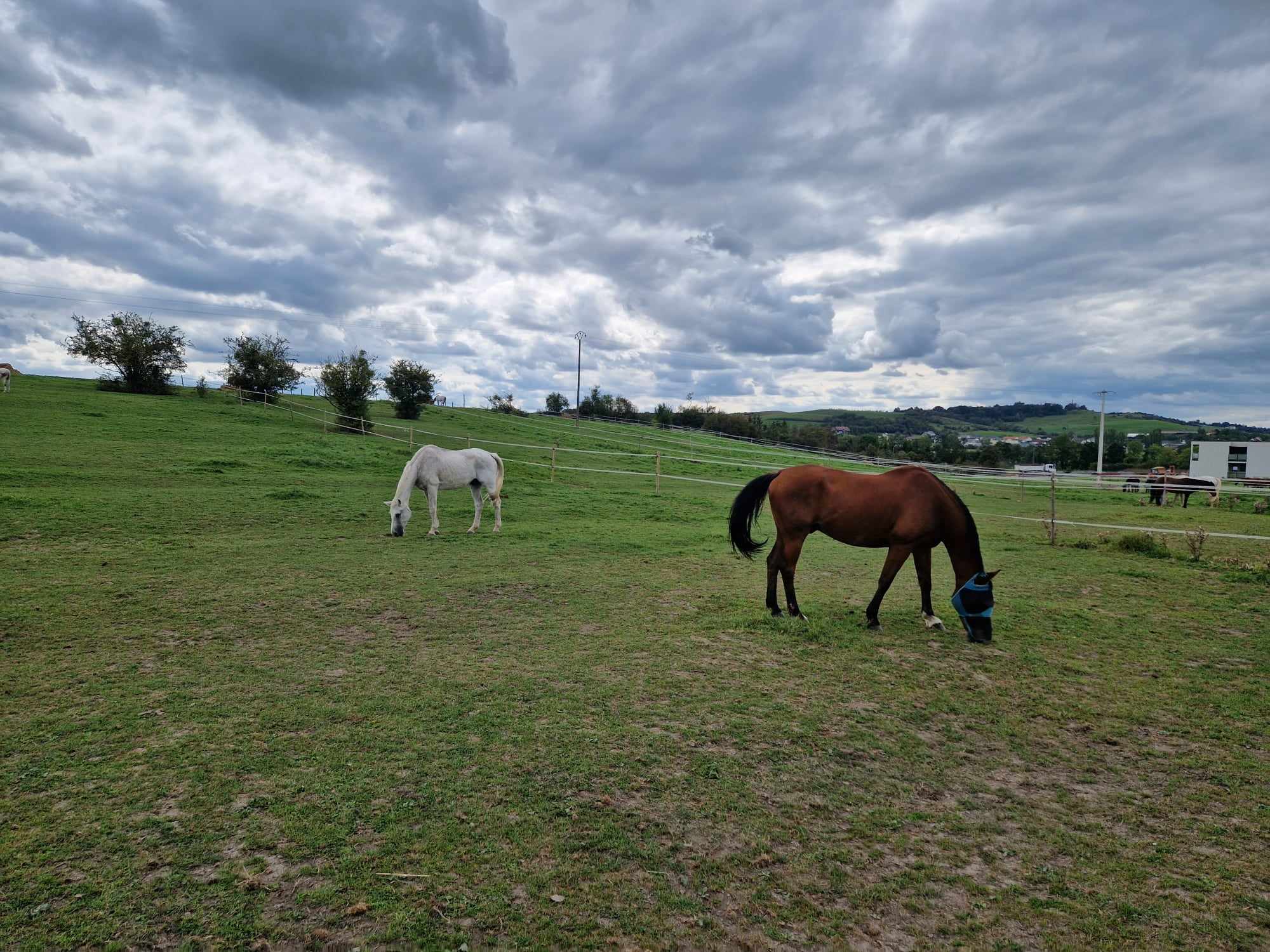 Là on va à l’écurie des Verts Coteaux à Macheren, où j’ai mes deux chevaux en pension, Réflexe, un petit poney qui a 18 ans et Inka, une jeune jument de cinq ans.