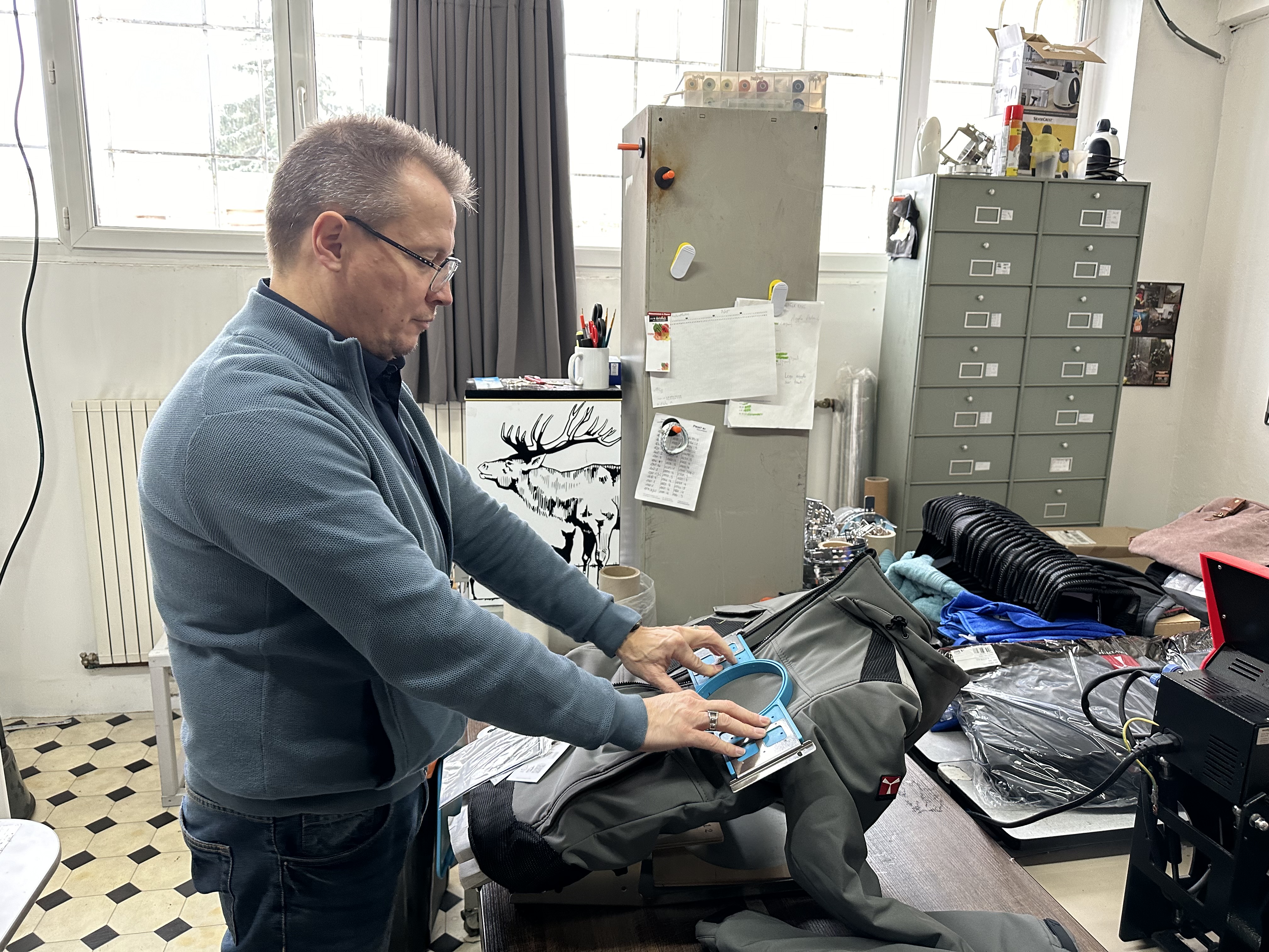 Ça va du T-shirt au blouson, au pantalon, tout ce qui est pour les particuliers ça sera surtout les mugs, les gourdes, les boîtes à lunch. Tout ce qui fait partie de la broderie aussi, des polos, des sweats, on fait beaucoup de flocage et tous types d’objets comme les porte-clés ou d’autres objets qui peuvent être personnalisés.