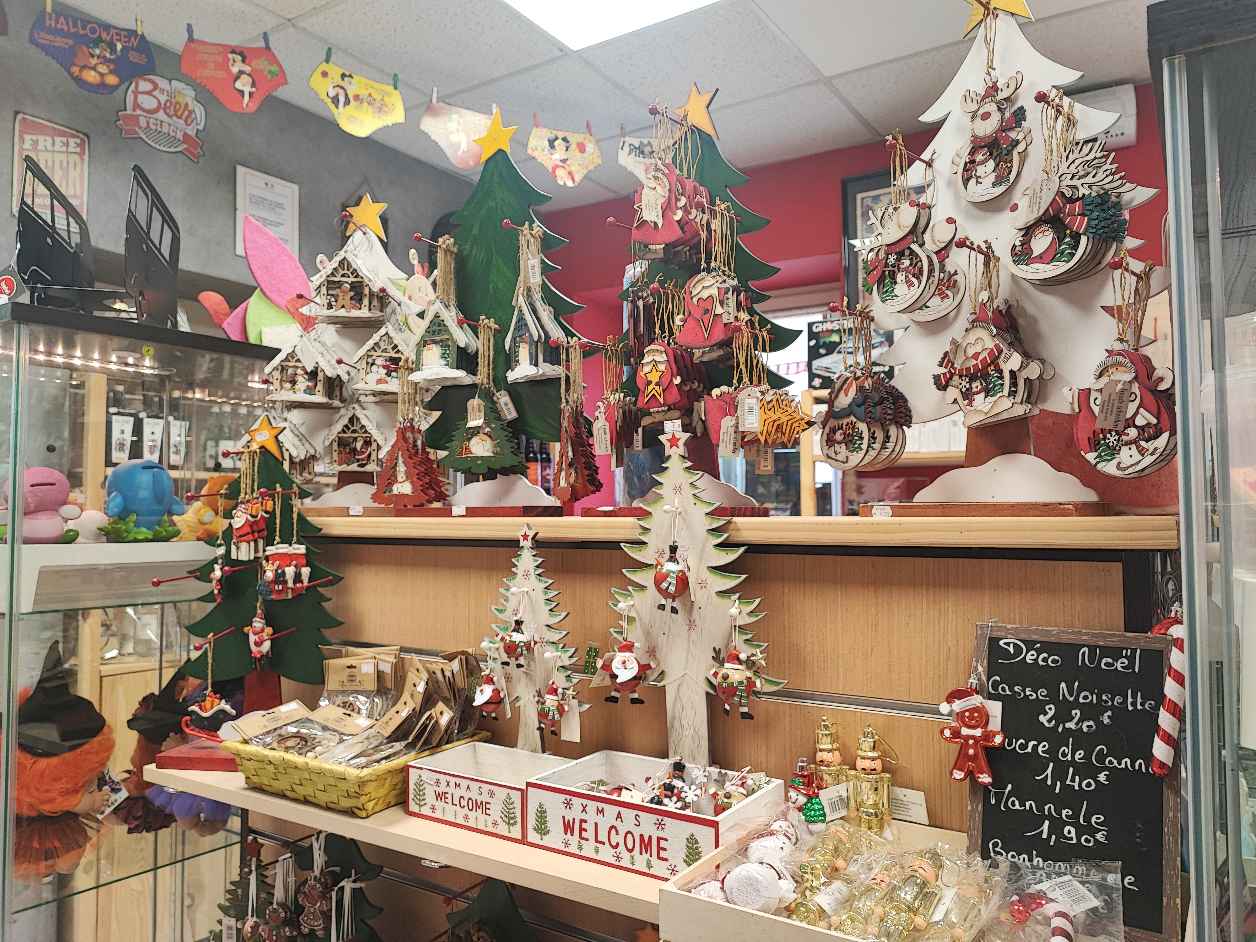 On y trouve des poupées en vinyle d'Espagne qui sentent la vanille comme les poupées d'autrefois, des décos de Noël toute l’année, des compléments de thé, tasses et mugs.