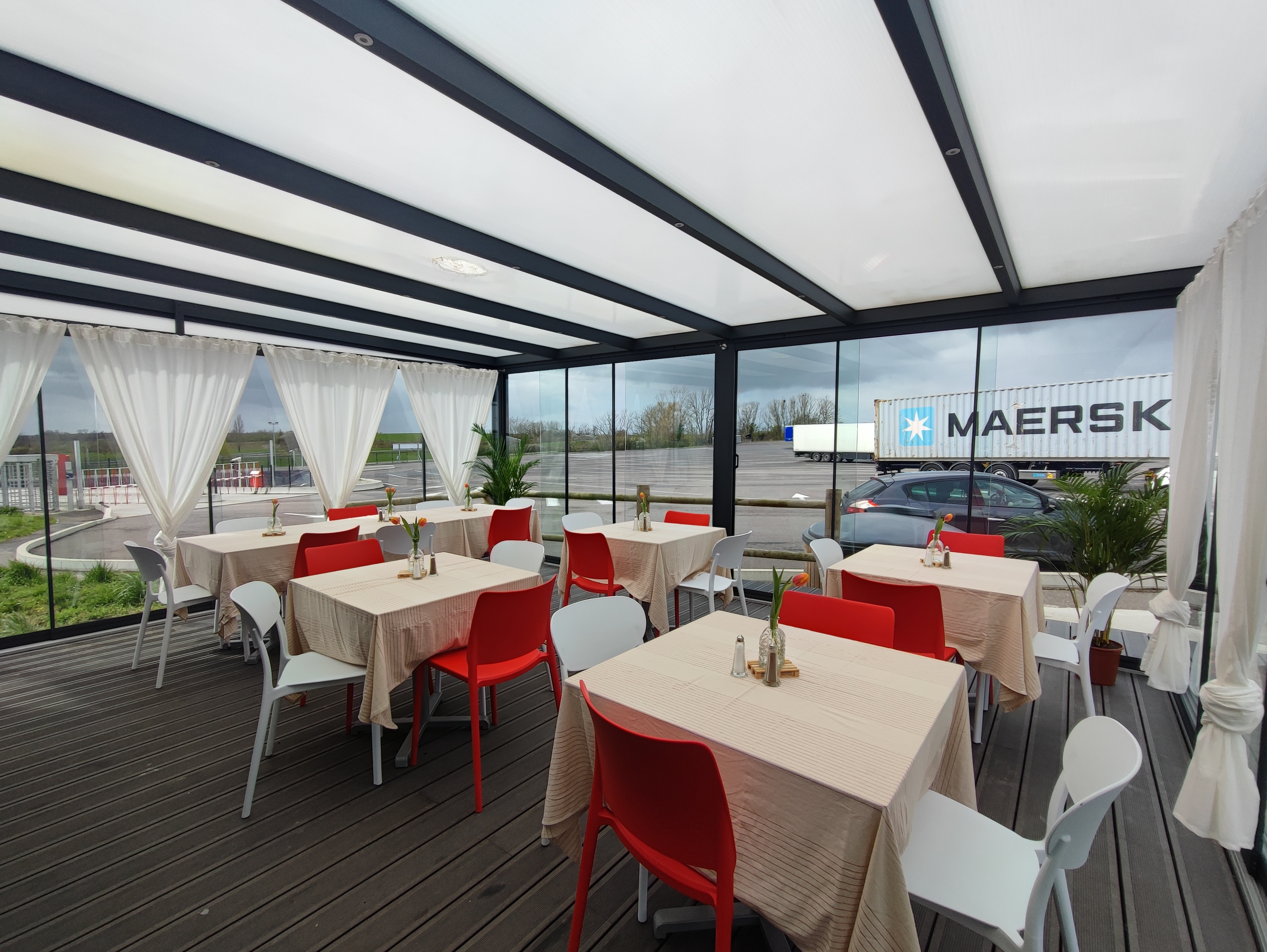 À l'intérieur de ce petit espace lumineux, entouré de baies vitrées et de rideaux blancs, les convives découvrent un cadre chaleureux. Avec ses nappes couleur crème et ses chaises rouges et blanches, le restaurant propose une cuisine traditionnelle et familiale, où l'accent est mis sur la fraîcheur des ingrédients. Stéphanie Munch, gérante du ''Resto Routier'' :