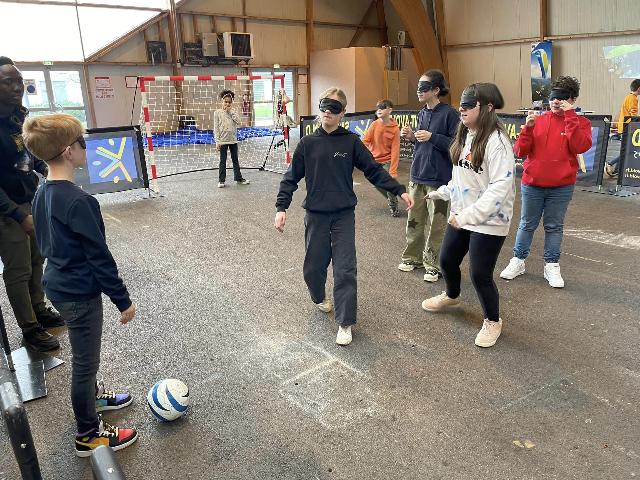 Juliette, 11 ans, a perdu la vue le temps d’un exercice avec une canne. Margaux, du même âge, a testé le cécifoot.