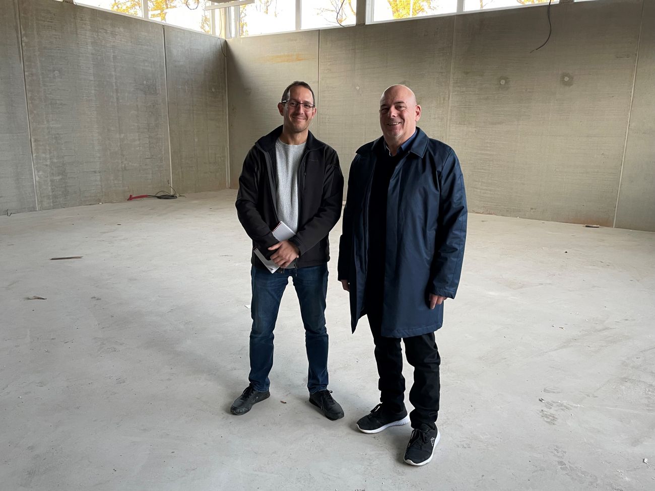 L'entreprise Irion qui avait le gros oeuvre de ce chantier a fait la proposition de passer sur des murs pré-fabriqués plutôt que de la maçonnerie traditionnelle, ce qui a deux avantages : l'avantage d'avoir une meilleure finition et l'avantage de pouvoir maintenir un avancement de chantier malgré des conditions météo pas idéales.