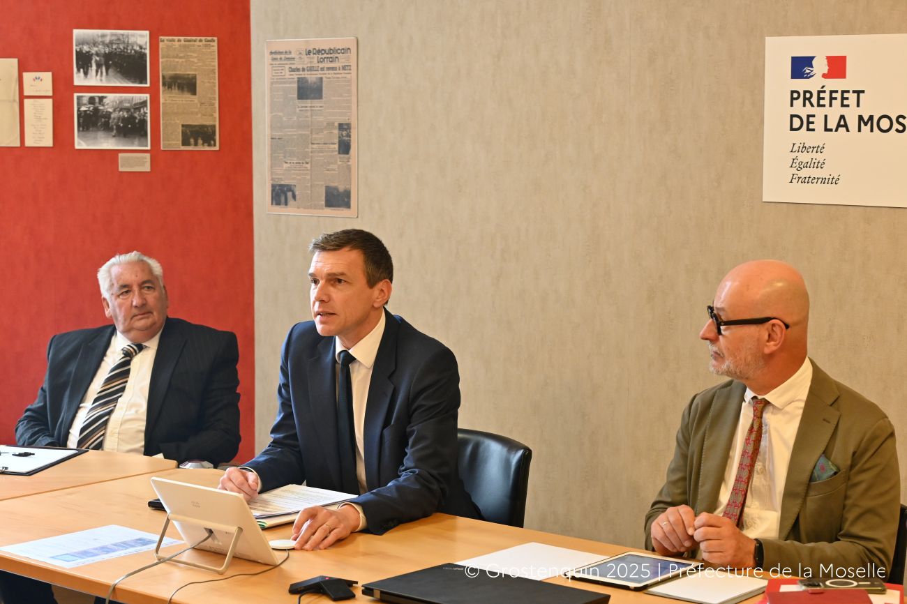 Le pasteur Charpentier, à gauche, Richard Smith, secrétaire général de la préfecture, et Franck Chaulet, sous-préfet de l'arrondissement de Forbach
