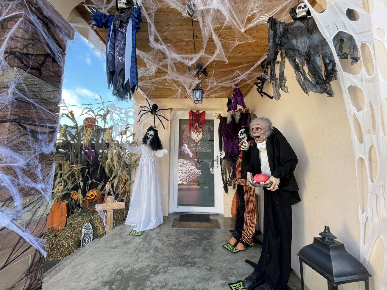 Ce trentenaire a décidé de décorer aussi son extérieur avec notamment un squelette qu’on ne peut pas louper.