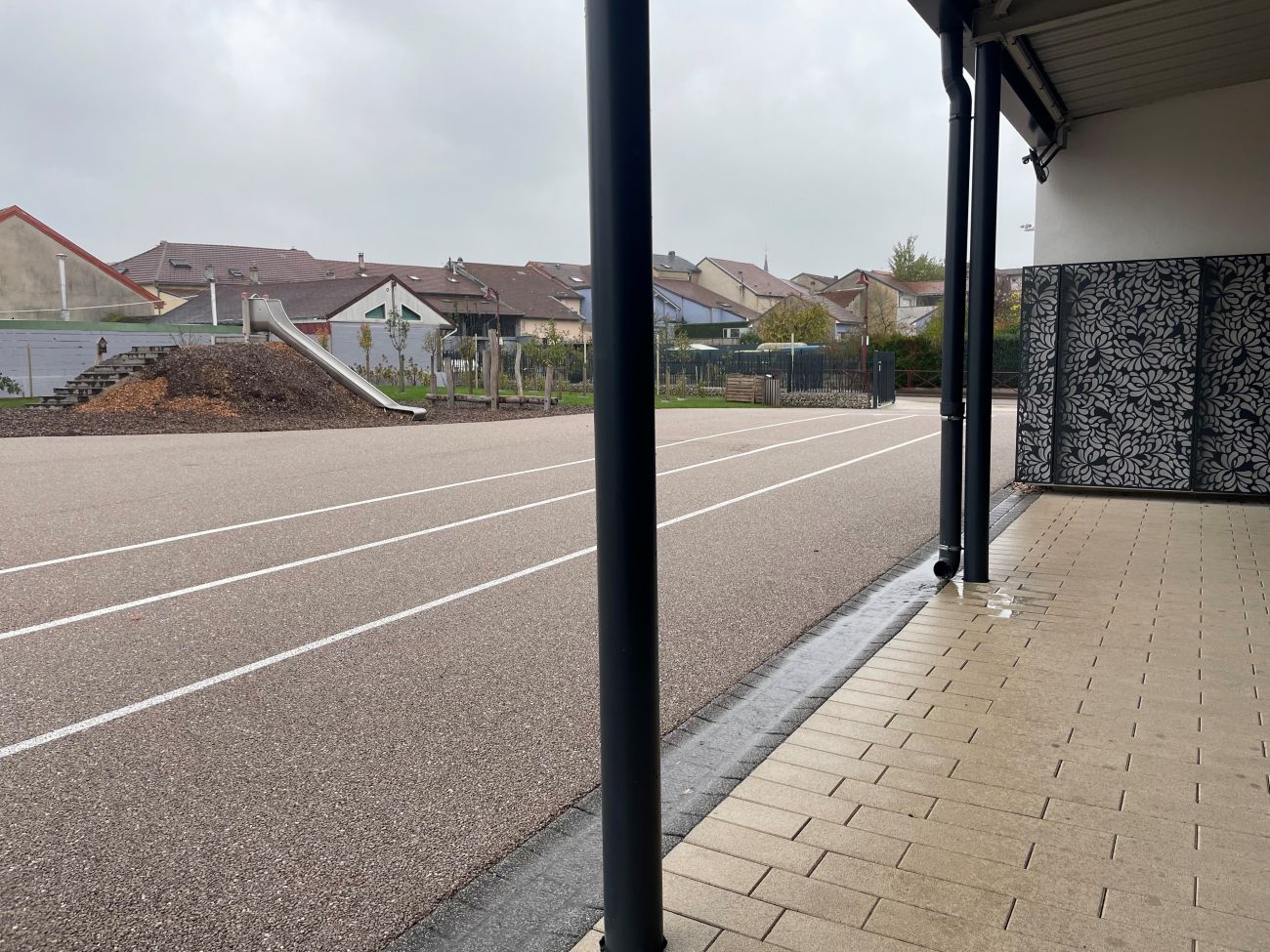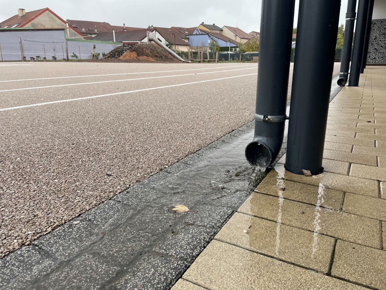 Grâce au CAUE de la Moselle qui a fortement contribué par des ateliers thématiques à travailler avec les enfants sur une "cour idéale", comme ils l'appellent, avec des arbres, avec des espaces de jeu, des espaces pour faire cours dehors, un potager, et maintenant, on se retrouve avec cette cour végétalisée, on voit le circuit de l'eau, on la récupère aussi.