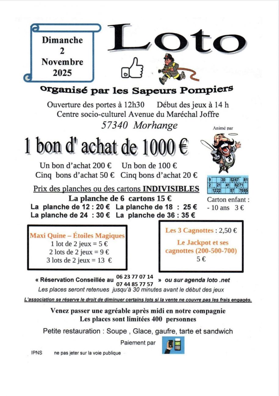 Les sapeurs-pompiers de Morhange organisent leur loto au centre socioculturel ce dimanche à partir de 12h30. La réservation est conseillée.