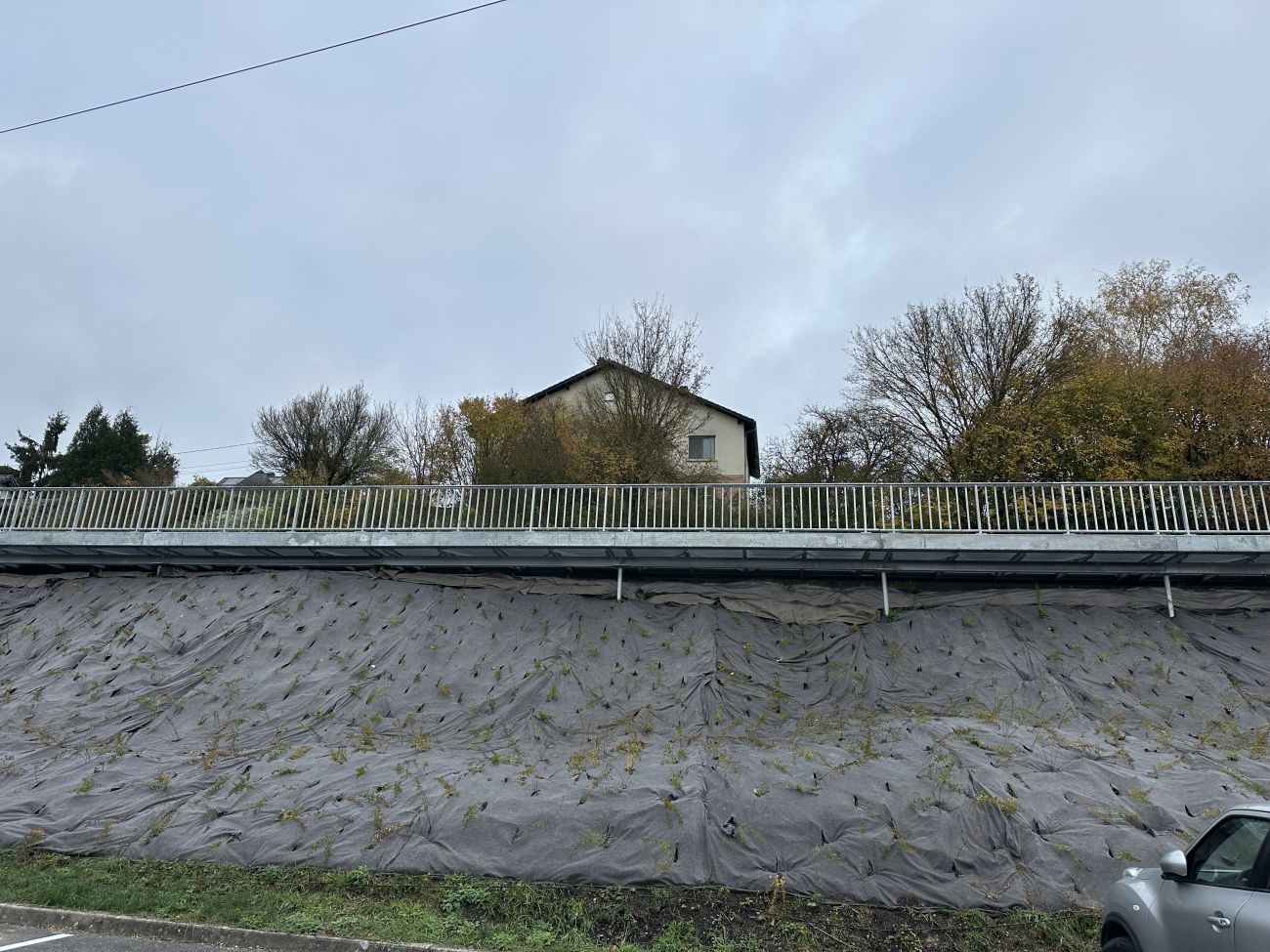 C’est une surlargeur en bitume et en caillebotis, séparée de la chaussée par un muret, qui a été créée sur la route reliant Lixing-lès-Rouhling et Grosbliederstroff. Laetitia Neu est la responsable du service voirie à la Communauté d’Agglomération Sarreguemines Confluences.