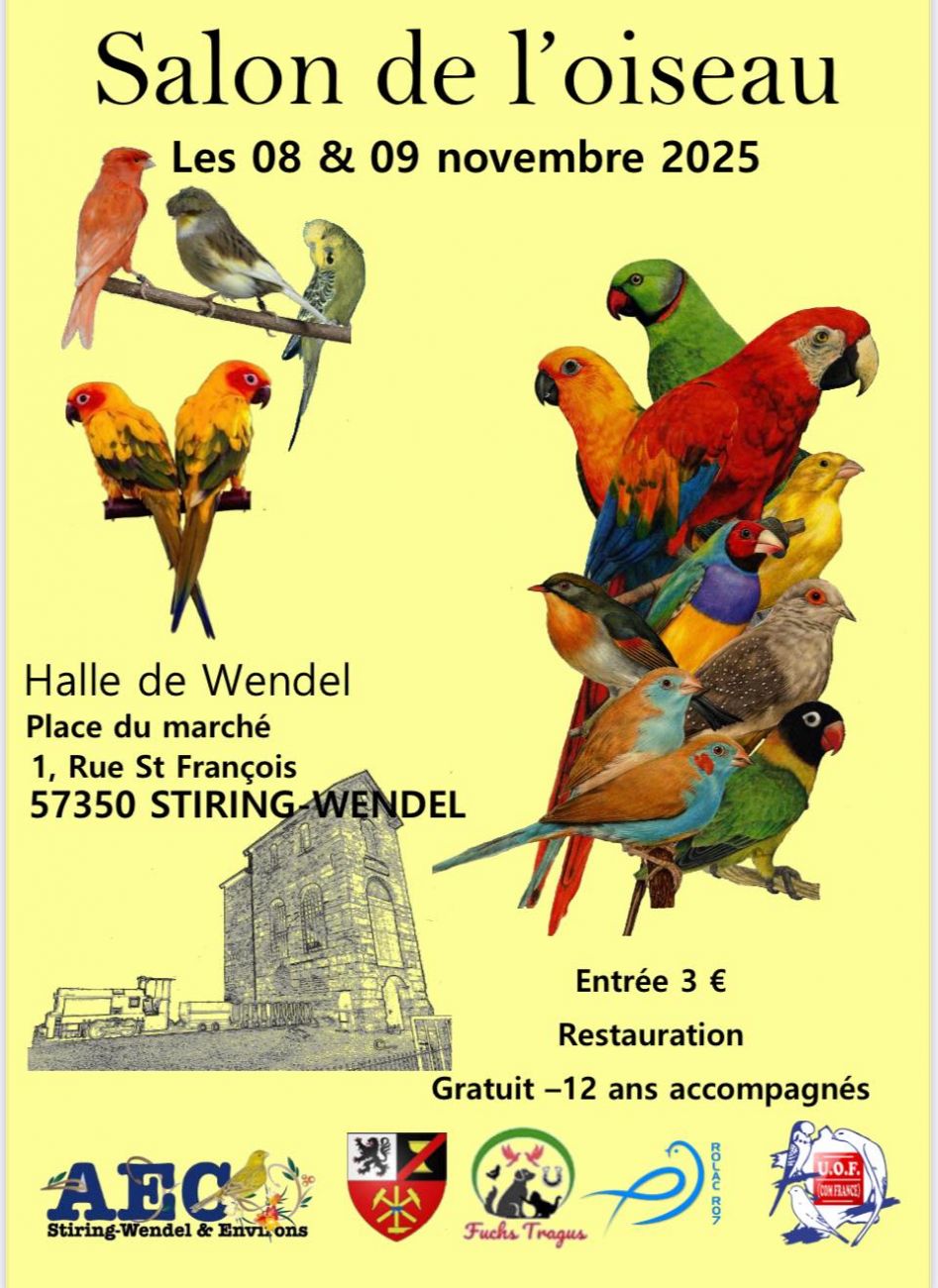 Une bourse transfrontalière d'oiseaux de compagnie se tient à la maison de quartier de Neunkirch à Sarreguemines ce dimanche de 9h à 16h. L’entrée est à 2 euros.