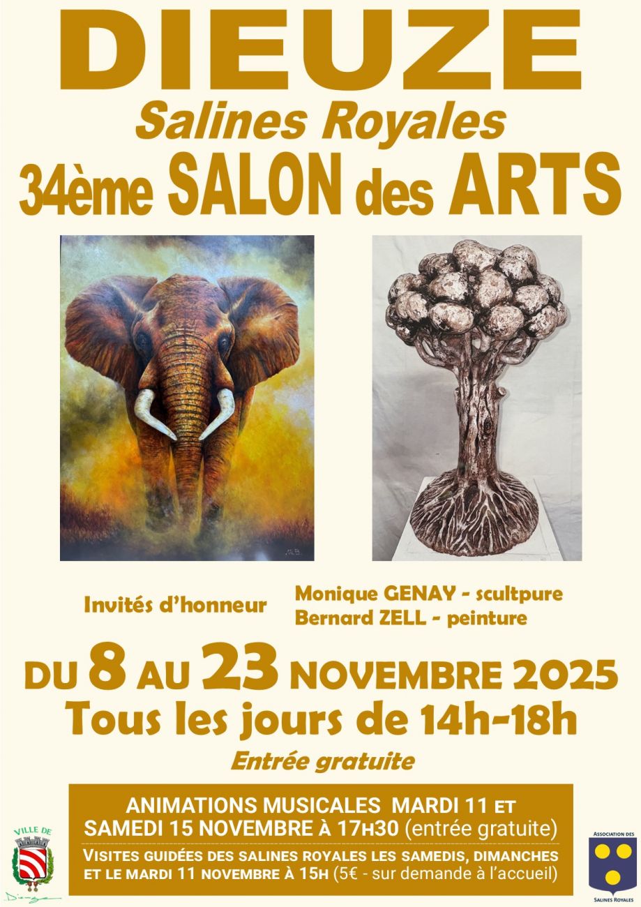 34ème salon des arts aux Salines Royales à Dieuze. Plus de 70 exposants seront présents dès samedi et jusqu’au 23 novembre. Rendez-vous tous les jours de 14h à 18h. Entrée gratuite.
