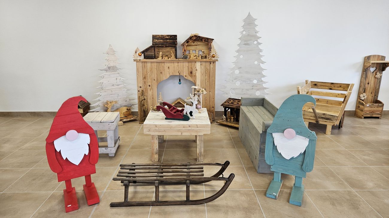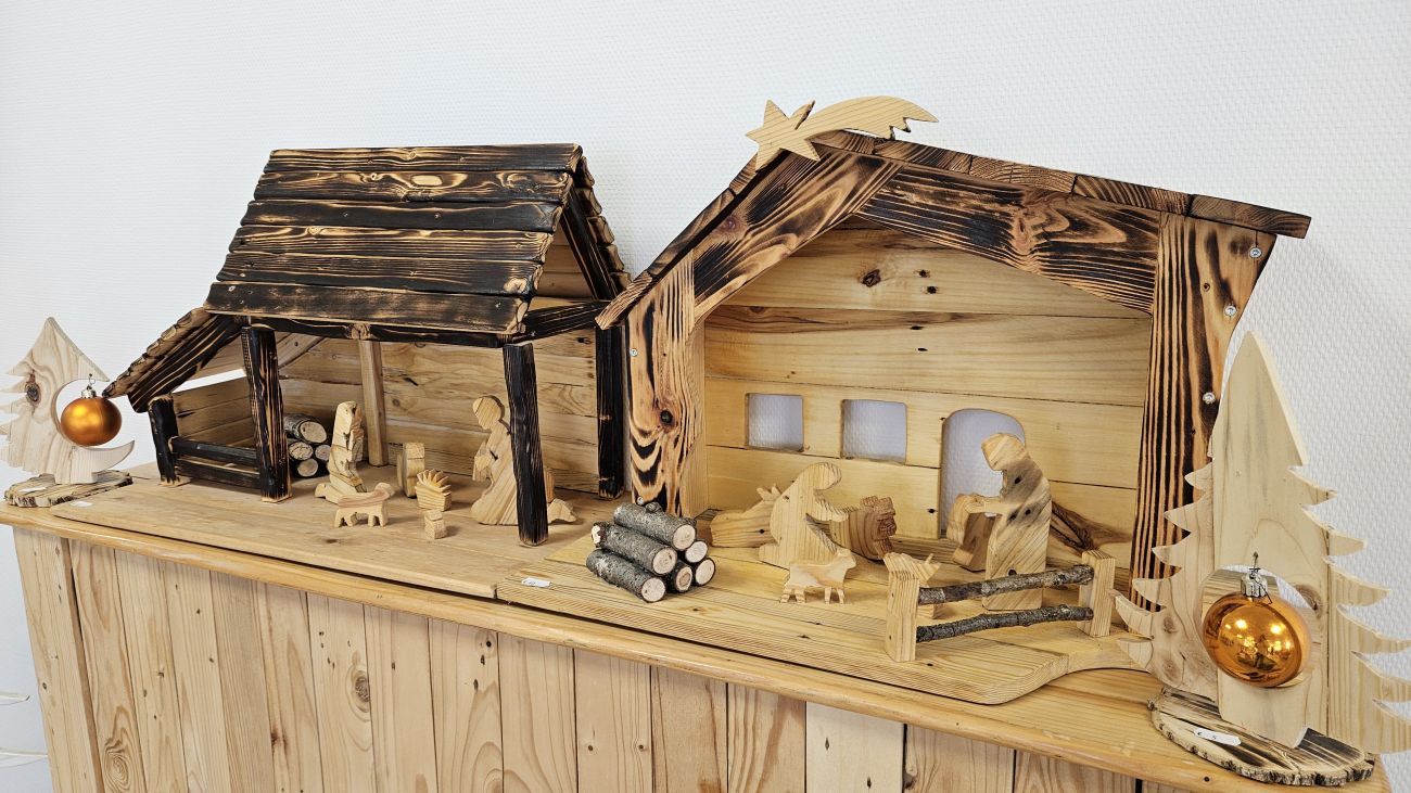 Vous allez trouver beaucoup de productions saisonnières. Actuellement, on prépare Noël avec des crèches, des petits Pères Noël. On a aussi toute une partie pour les enfants avec une petite cuisine, une marchande, des tables, des chaises. Pour la partie plus été, des salons de jardin, des meubles.