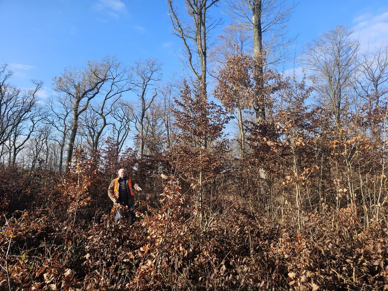 Le travail de dégagement qui a été fait là, il y a très peu de temps, c’est de couper ces hêtres qui étaient bien au-dessus et qui coupaient tout accès à la lumière de ces semis de chêne qui sont là, qui eux, constitueront l’avenir de la forêt.