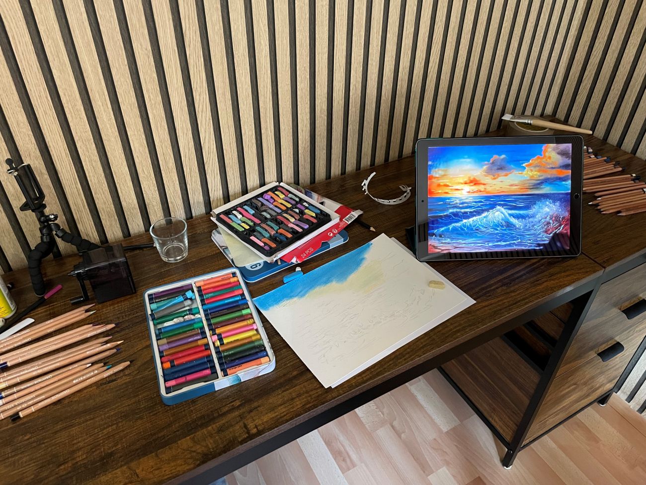 Autodidacte dès son plus jeune âge, il sait manier le crayon ou encore le pastel pour des portraits et des paysages. Chaque dessin lui prend des heures car il a le souci du détail.