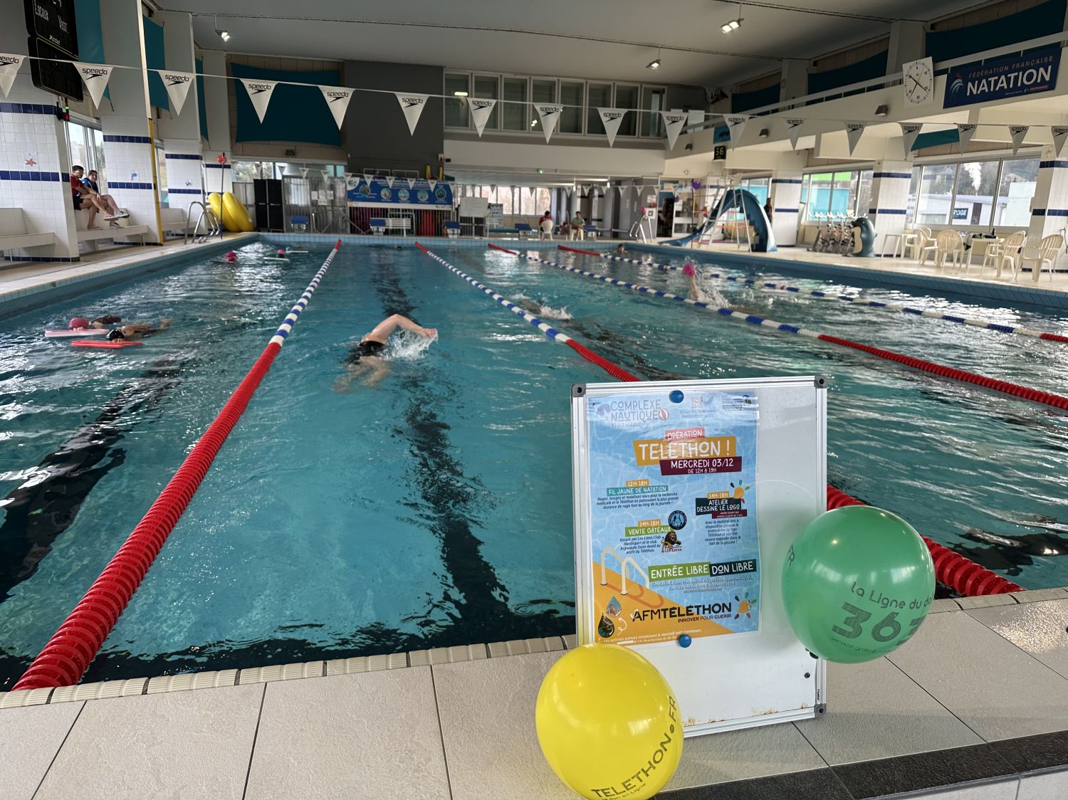 Ce mercredi, le centre nautique de Saint-Avold a lancé son "Opération Téléthon". De 12h à 19h, plusieurs ateliers étaient organisés comme le challenge de natation. Pour symboliser cette journée de solidarité, l’entrée de la piscine était libre. C’est au bord des bassins que nous nous sommes rendus.