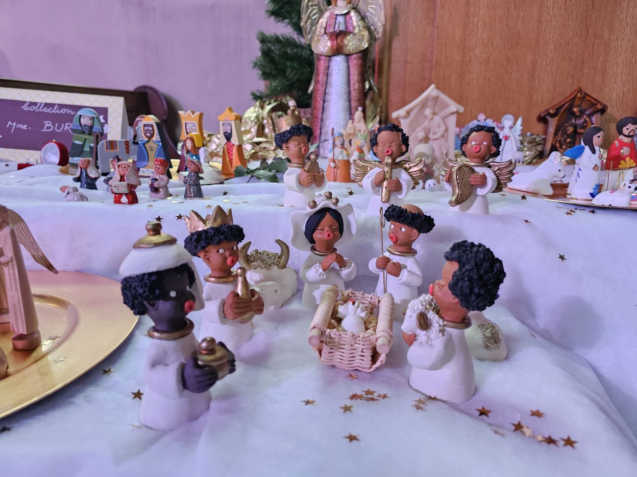 Les grandes crèches viennent des paroisses de Bellevue à Forbach, Petite-Rosselle, Tenteling, Diebling et Guebenhouse. Sinon, on a des collectionneurs, madame Karas de Freyming-Merlebach qui en a une centaine, les Burger de Stiring-Wendel aussi et donc à chaque fois c’est des cultures différentes, des pays différents, des matières différentes, des formes différentes et c’est très intéressant de voir comment on se représente dans les différents pays du monde la nativité, cette scène de la naissance de Jésus.