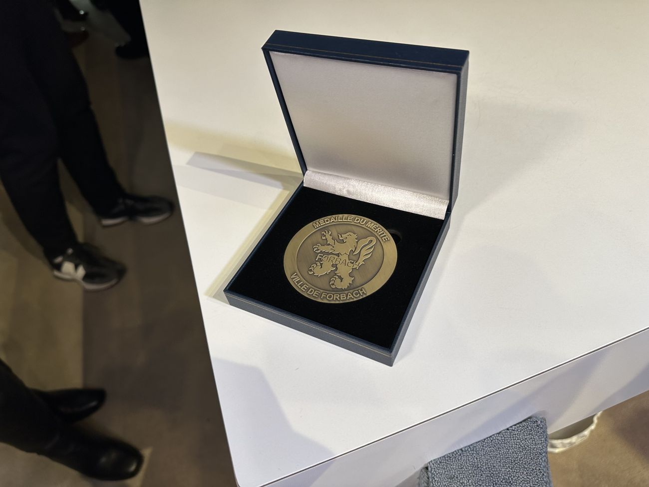 Au nom de la ville de Forbach, j’ai le plaisir et l’honneur de vous remettre la médaille de la ville de Forbach.