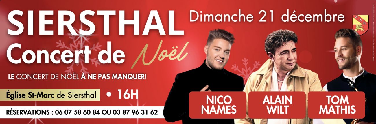 *Concert de Noël ce dimanche à Siersthal. La paroisse et la commune de Siersthal vous invitent dimanche 21 décembre à 16h à l'église St Marc. Entrée : 10€, petite restauration sur place.