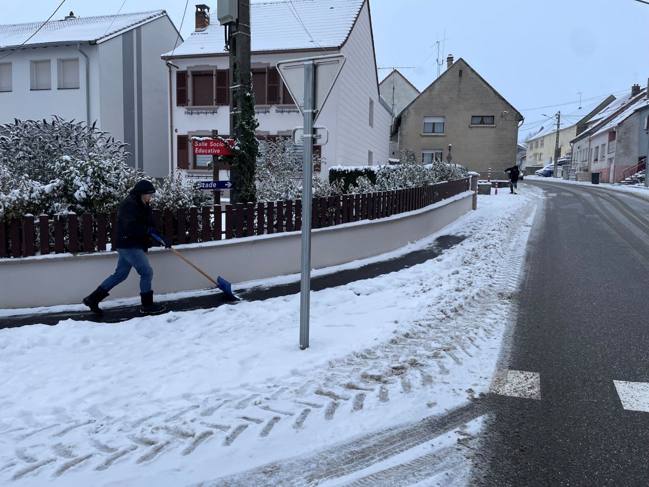 Je le fais toujours, c'est pour éviter quand les gens passent, qu'ils ne se cassent une jambe. Si tout le monde le faisait, ça serait propre partout ! C'est comme en été pour balayer le caniveau, c'est exactement pareil.