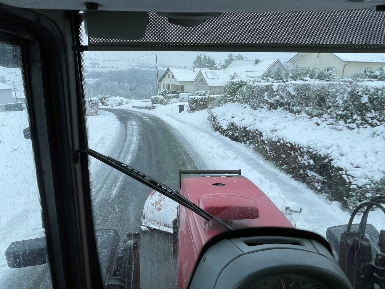 Dès 4h-5h du matin, à tour de rôle, Franck et Marc montent dans le tracteur pour aller déblayer les routes.