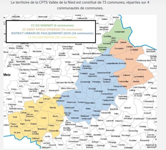 Si ce programme vous intéresse, vous pouvez le rejoindre gratuitement, auprès de la CPTS Vallée de la Nied. Voici son territoire :