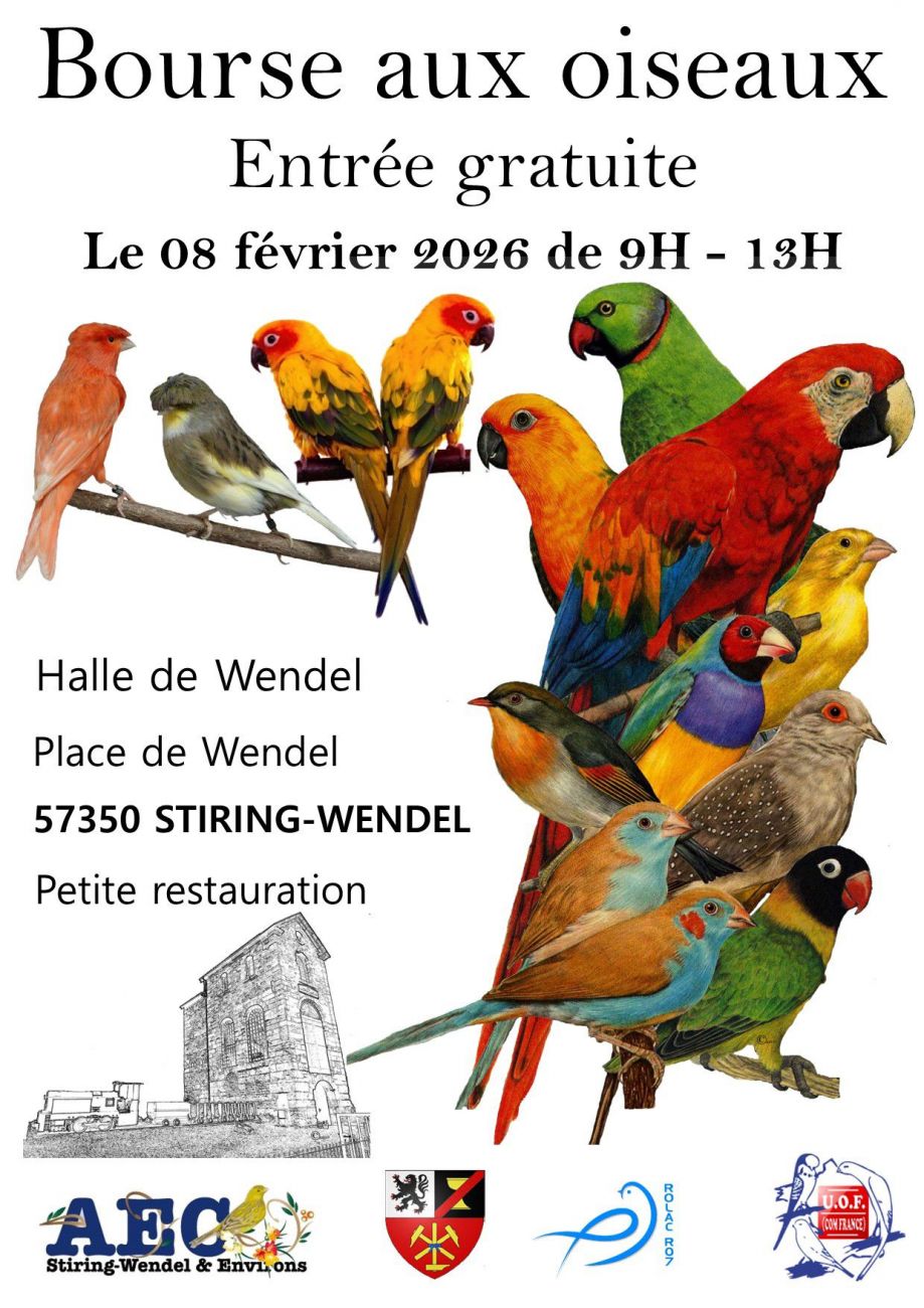 Une bourse aux oiseaux d’élevage est organisée à Stiring-Wendel par l’amicale des éleveurs de canaris. Une vingtaine d’exposants seront présents. Rendez-vous de 9h à 13h à la Halle de Wendel.