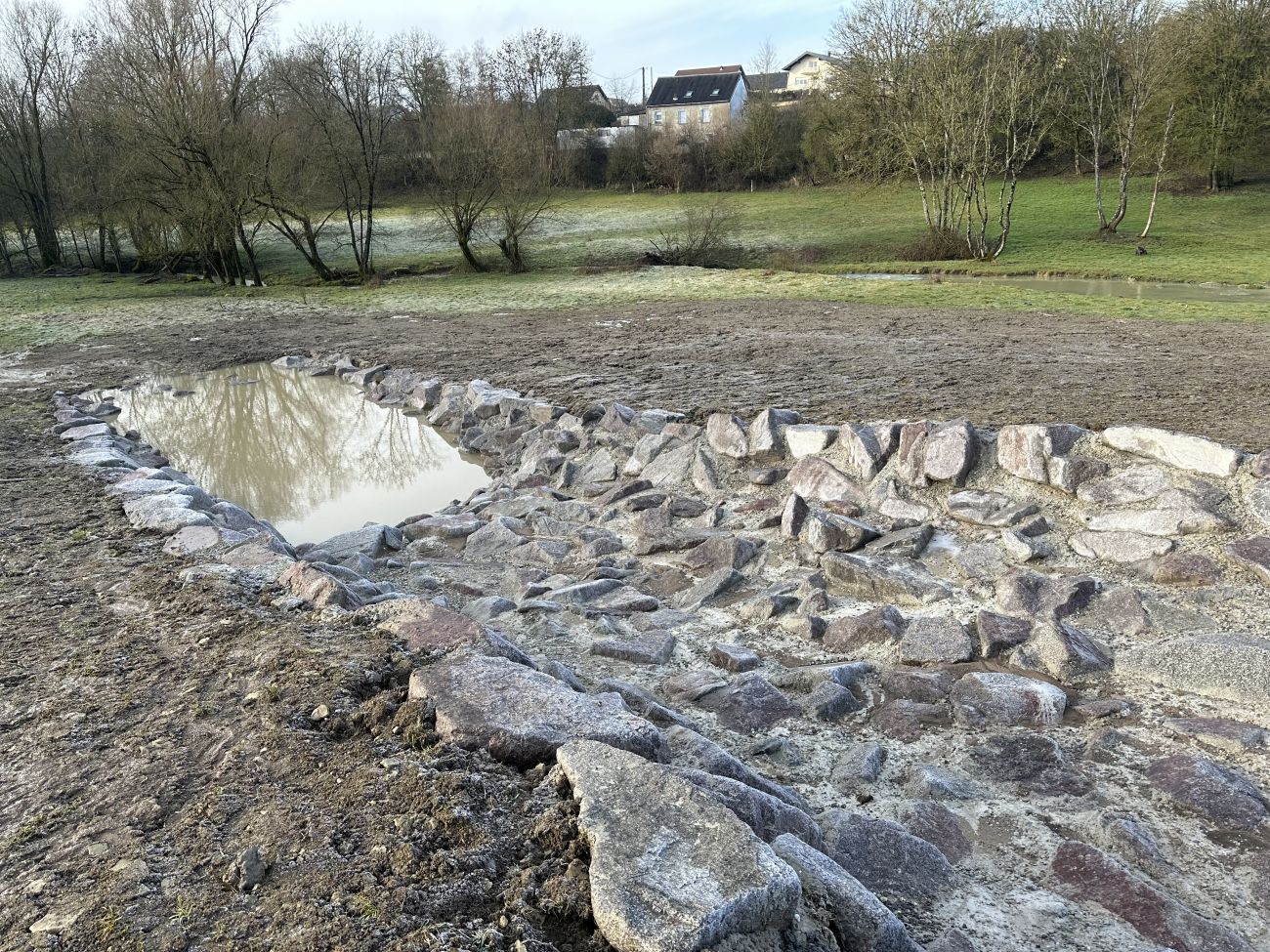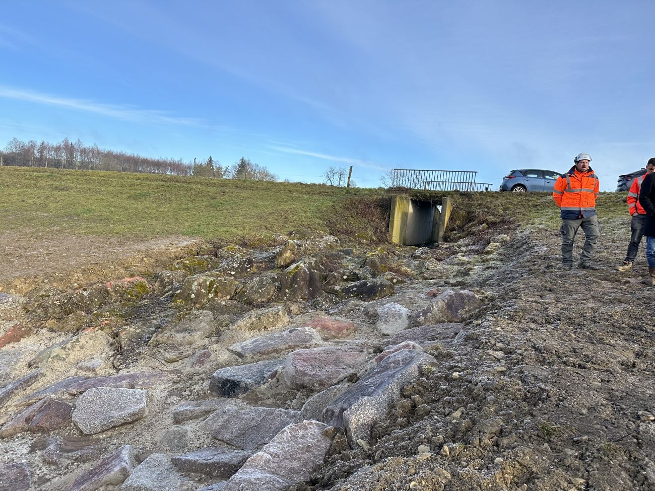 Il y a eu de grandes crues qui ont raviné le déversoir du bassin de rétention de Gros-Réderching. Toute la partie en aval du bassin a été refaite, là où l’eau s’écoulait lorsqu’il y avait le déversoir.