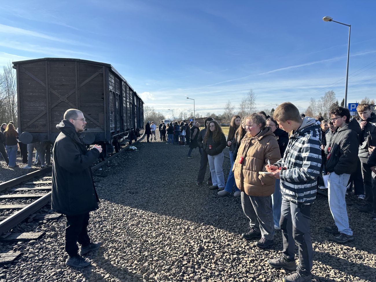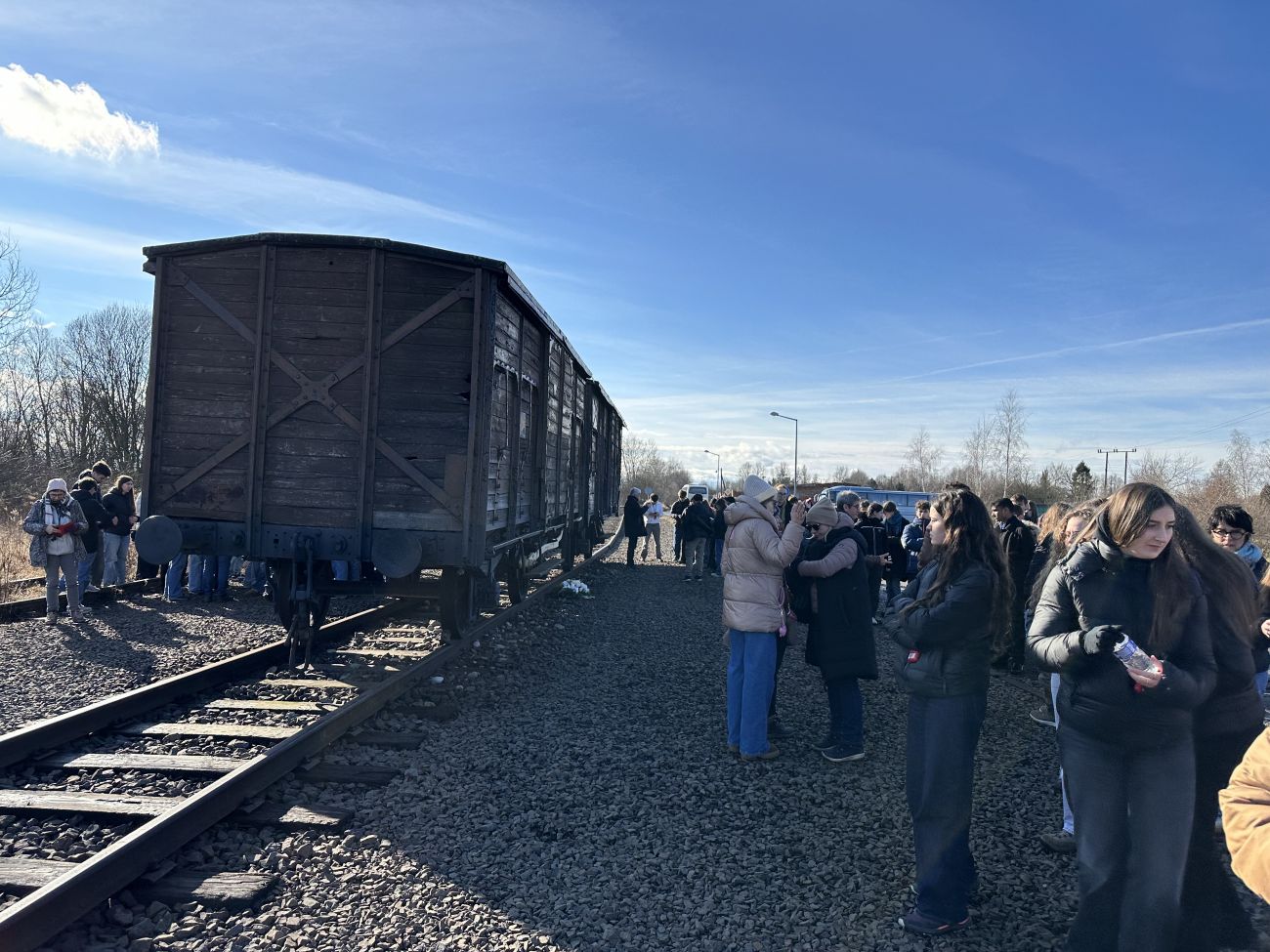 À quelques kilomètres de l’arrivée, une vague de calme envahit le bus qui nous transporte vers ce lieu historique. Les lycéens prennent conscience du poids de la destination. La visite débute sur la Judenrampe, devant un wagon de déportation.