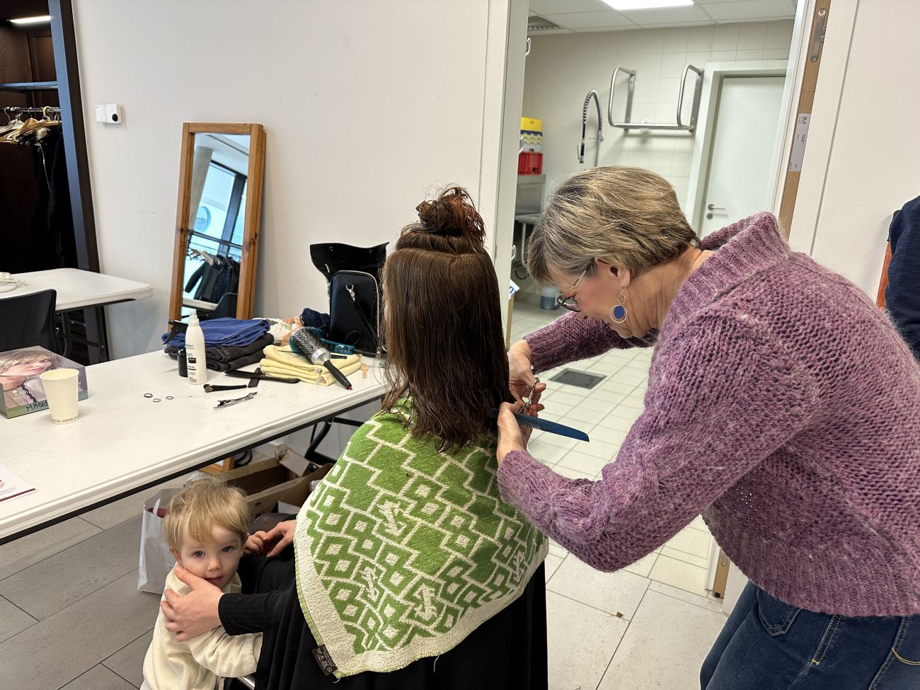 Coiffeuse à la retraite, Claudine s’occupe de réaliser les coupes pour récolter un maximum de longueurs.