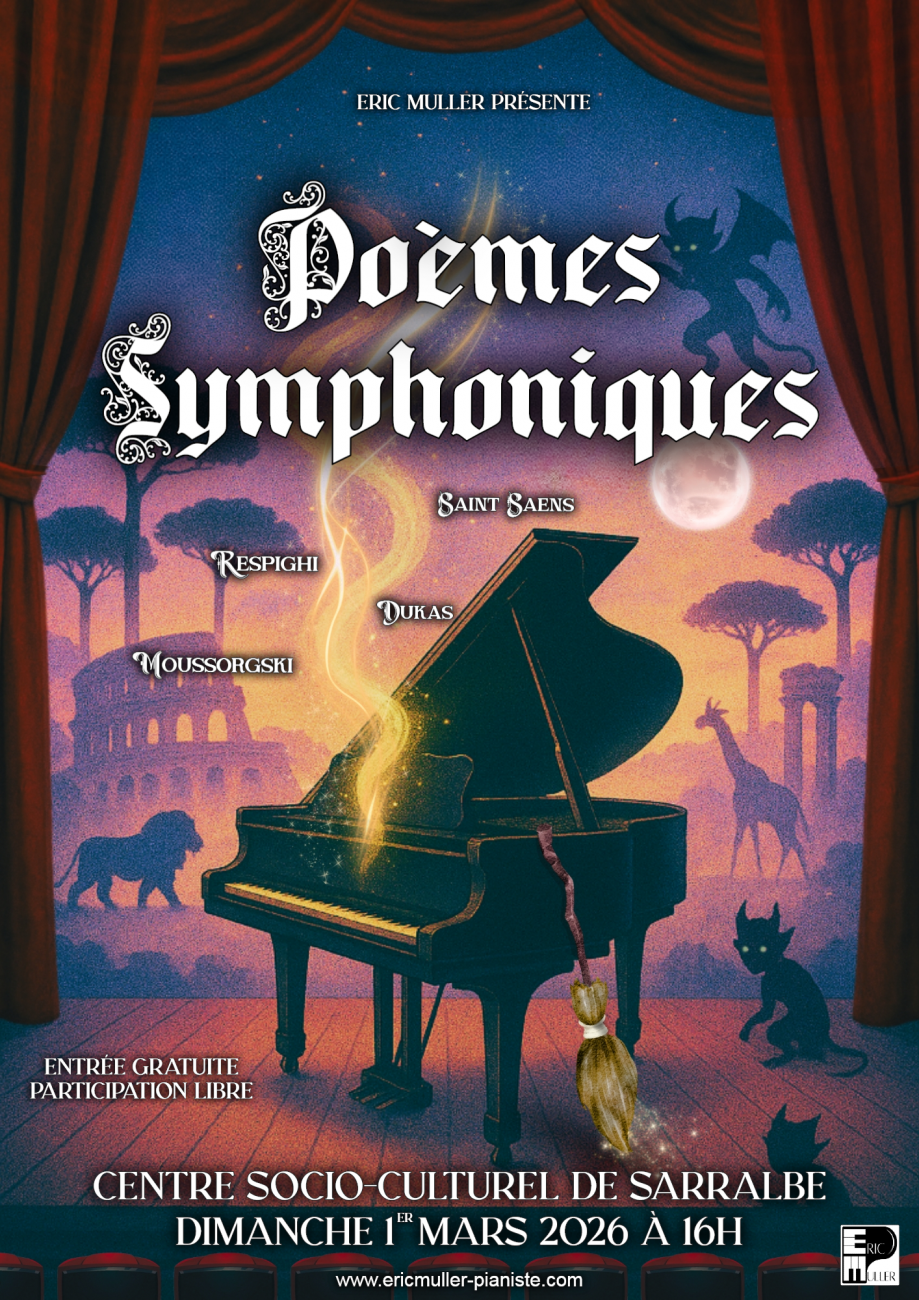 Un concert de poèmes symphoniques, du pianiste Eric Mullerse tient ce dimanche à 16h, au centre socio-culturel de Sarralbe. Entrée libre.