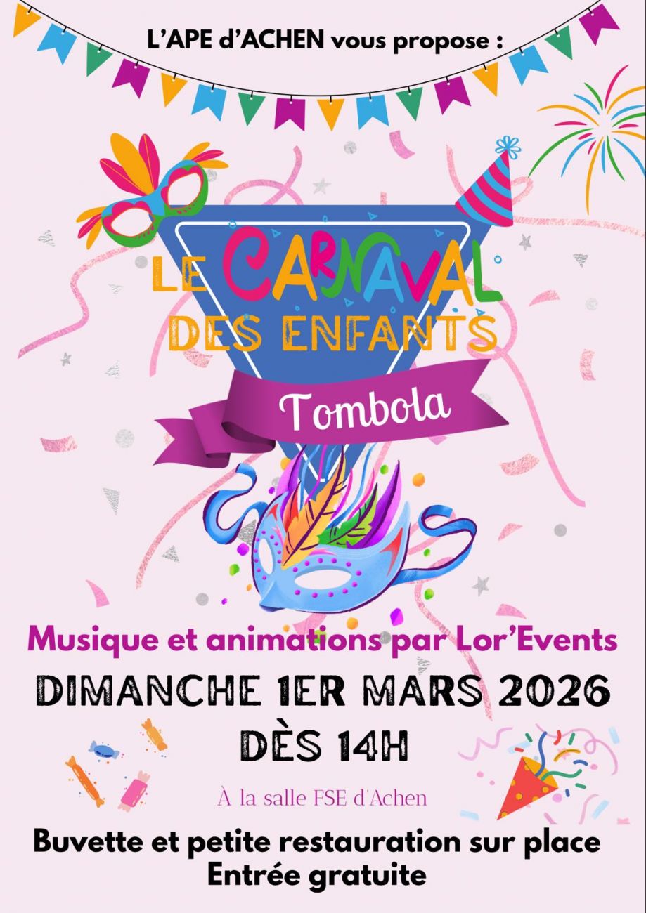 Les enfants sont aussi attendus avec leur plus beau déguisement, ce dimanche, entre 14h et 18h à la salle du FSE de Achen. Entrée gratuite.