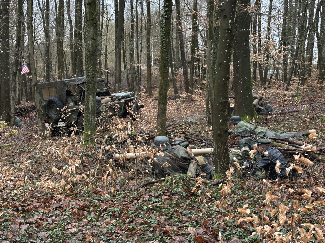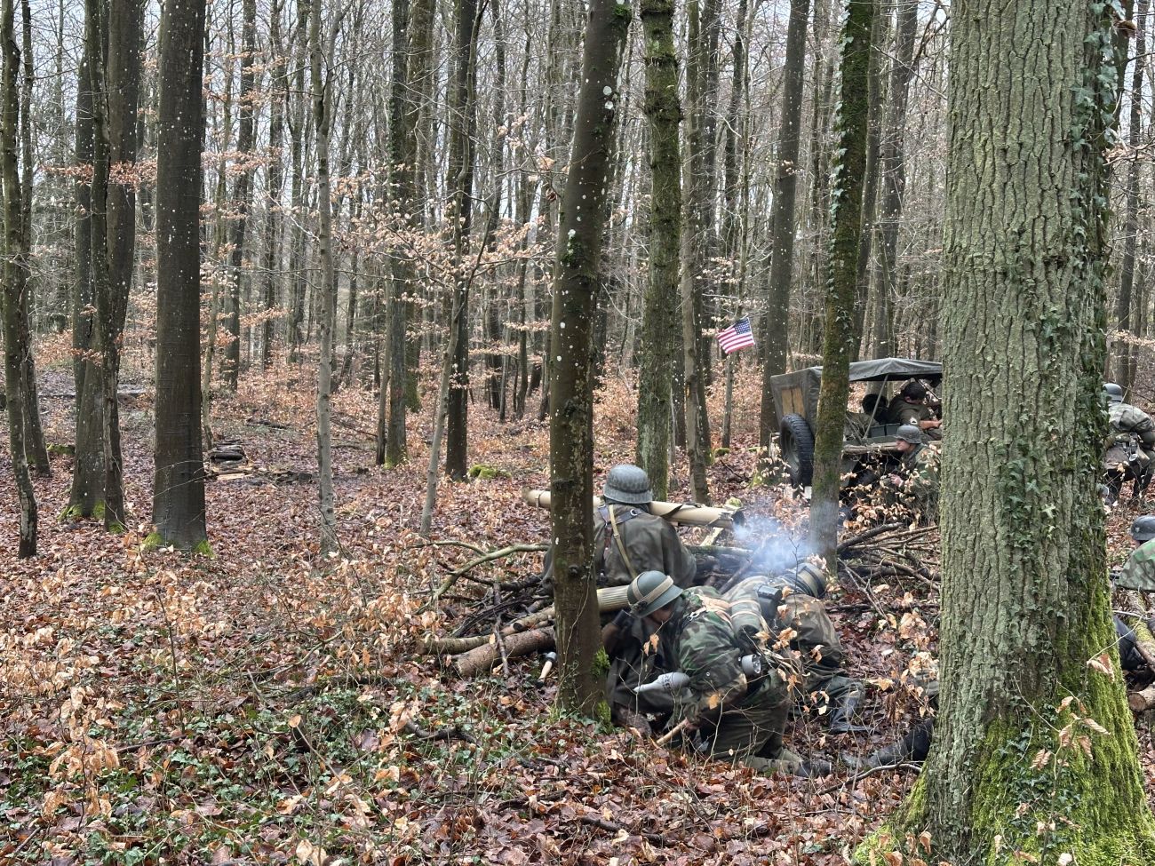 On représente l’arrivé des Américains, on commence à se battre. Les Allemands nous mettent un peu la pâtée, donc on va se replier.