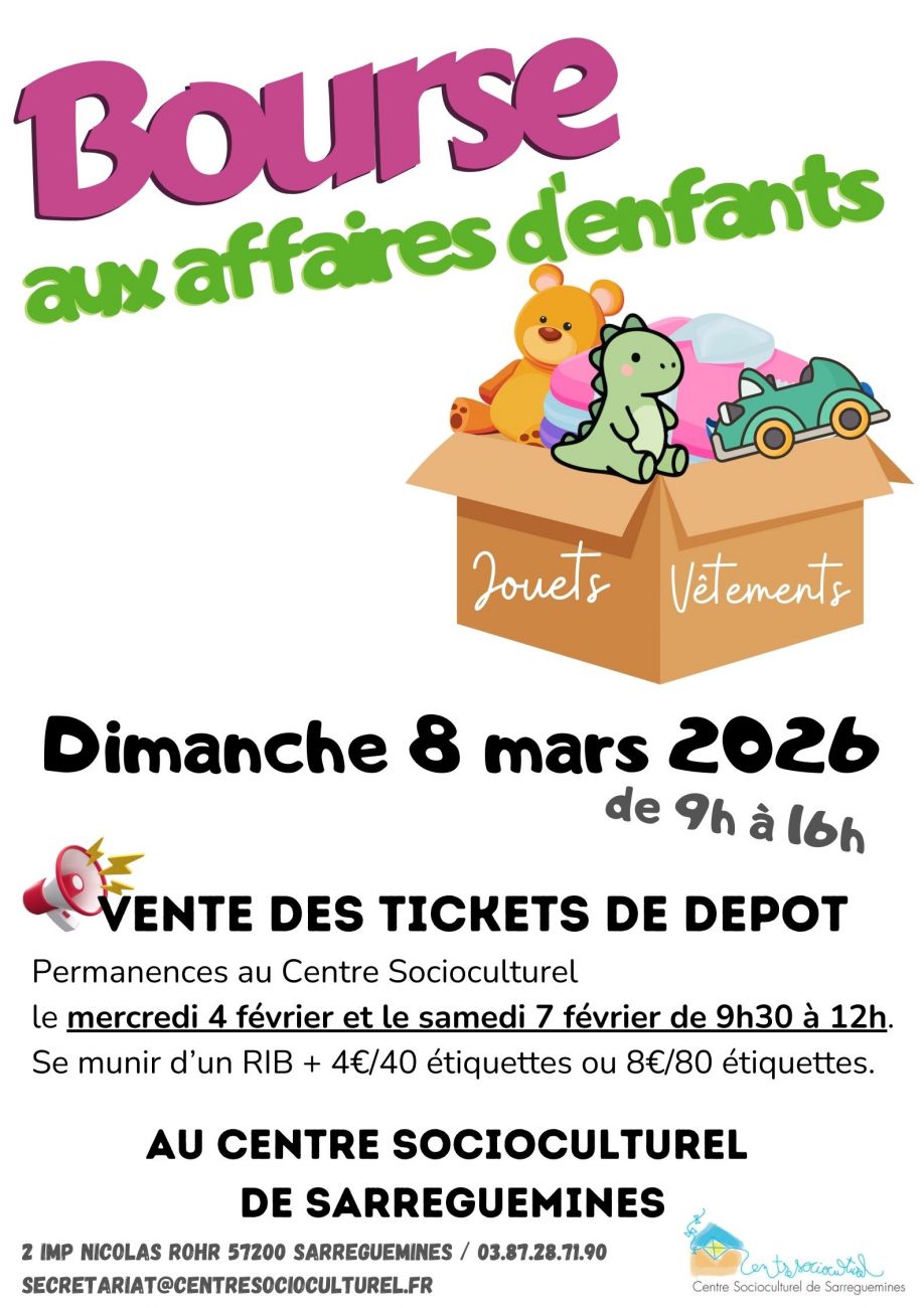 Une bourse aux affaires d’enfants a lieu ce dimanche de 9h à 16h au centre socioculturel de Sarreguemines.