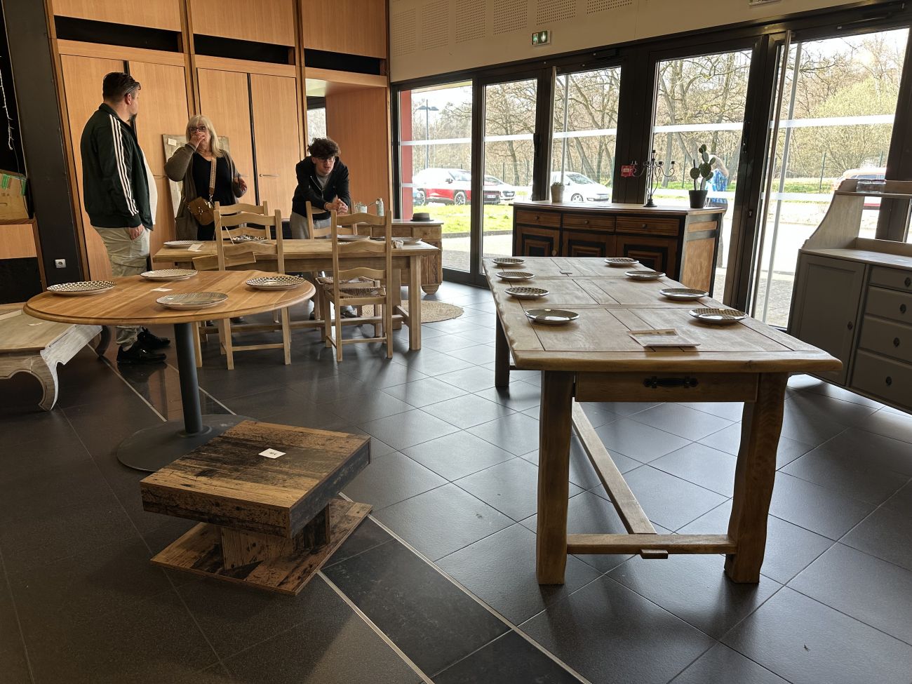 Sandrine a eu le coup de cœur pour la table en chêne, malheureusement, déjà vendue.