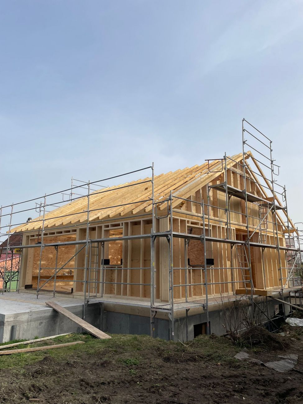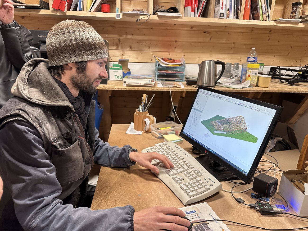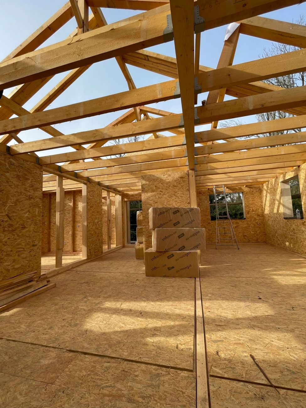 On fabrique tout, de A à Z, de la base, jusqu’en haut, en termes structurel. On fabrique la dalle du sol, on fabrique les murs, on fabrique le solivage qui va tenir le plafond, et on fabrique la charpente, évidemment. On a pas mal de cordes à notre arc.