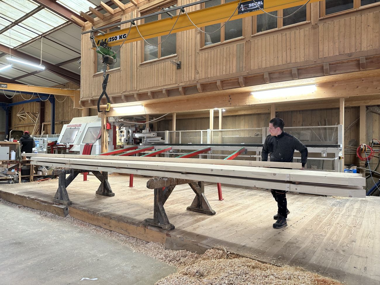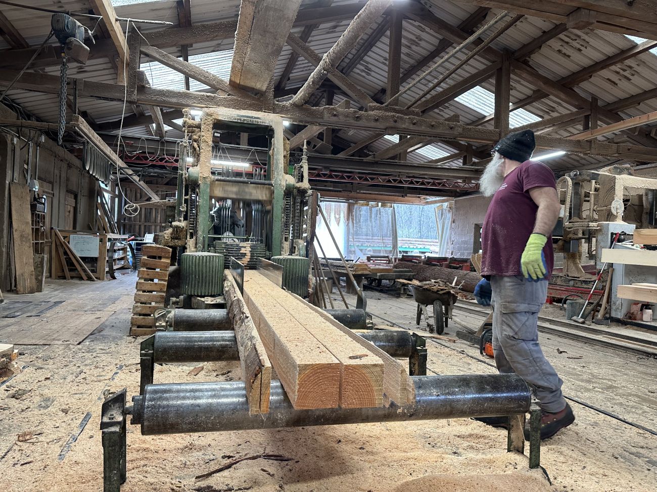 La charpente, c’est l'une des spécialités de la famille. Après avoir été découpé, le bois se rend dans l’atelier suivant.