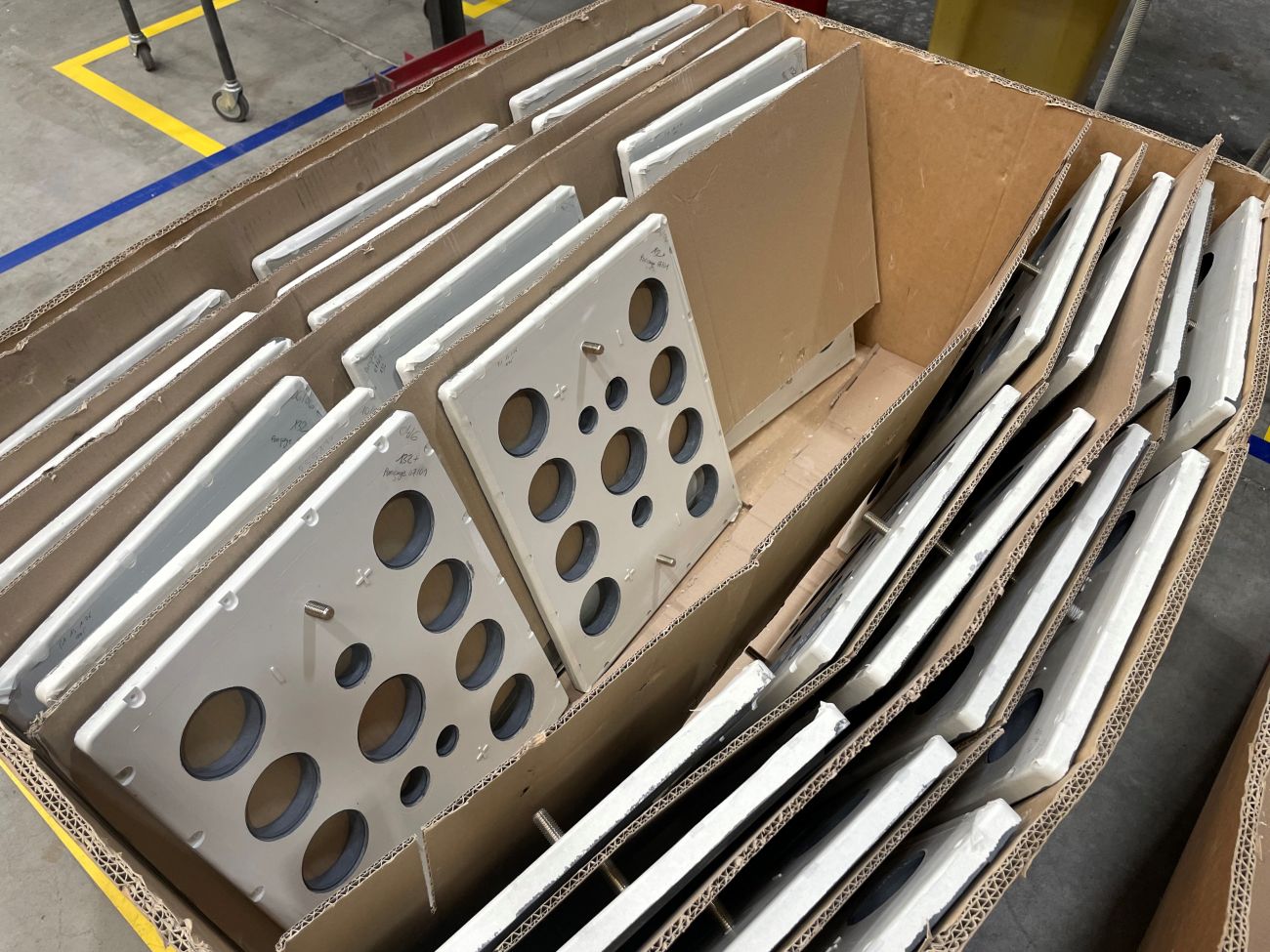 Les couvercles de batterie de sous-marin nucléaire. On réalise entre 300 et 400 éléments par an, avec une durée de 4 à 6 mois pour les fabriquer. Il y a énormément d'opérations manuelles qui sont à faire.