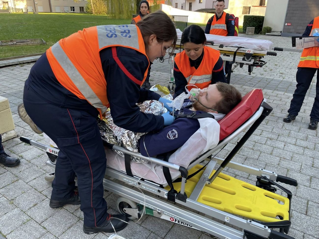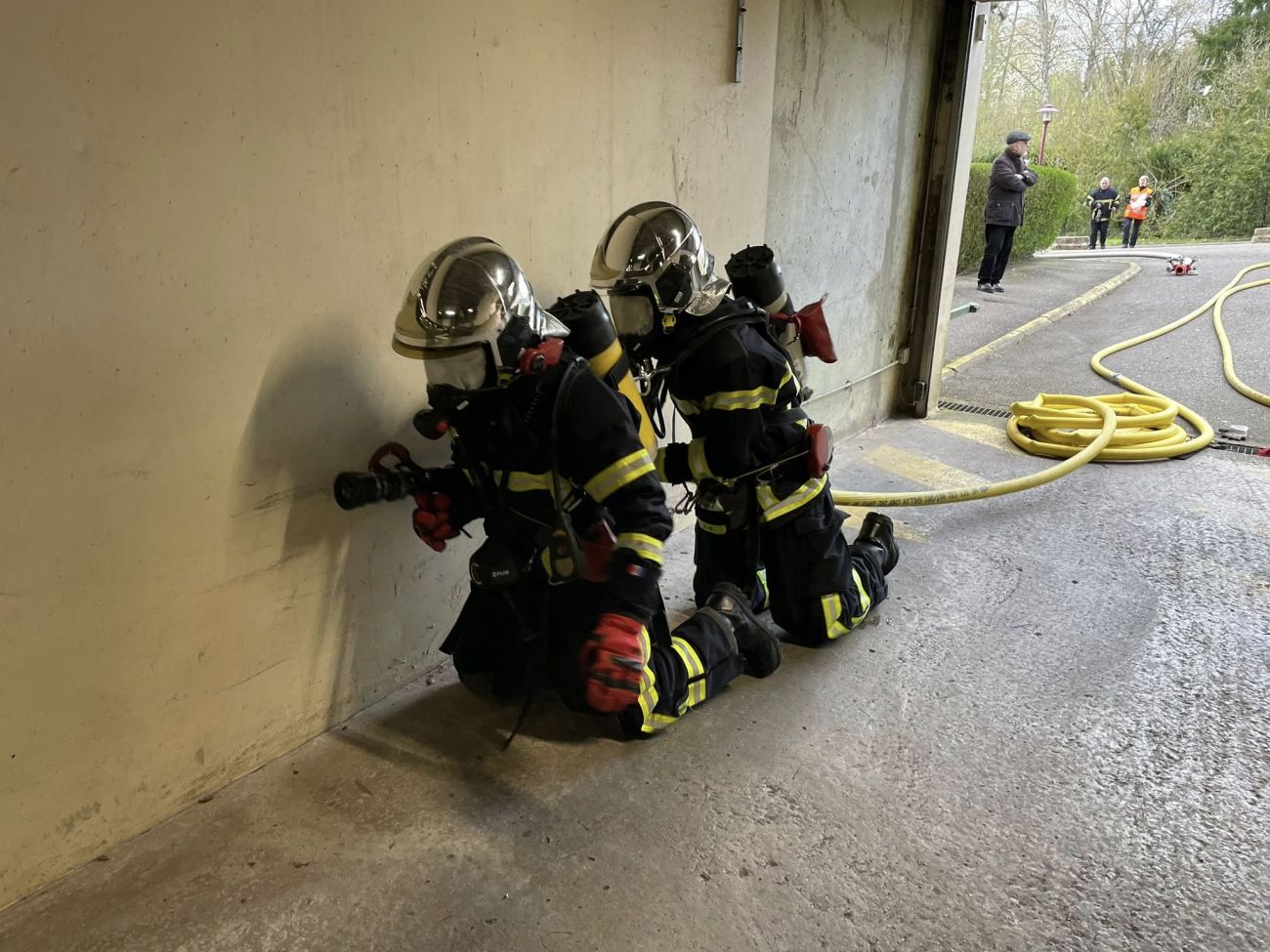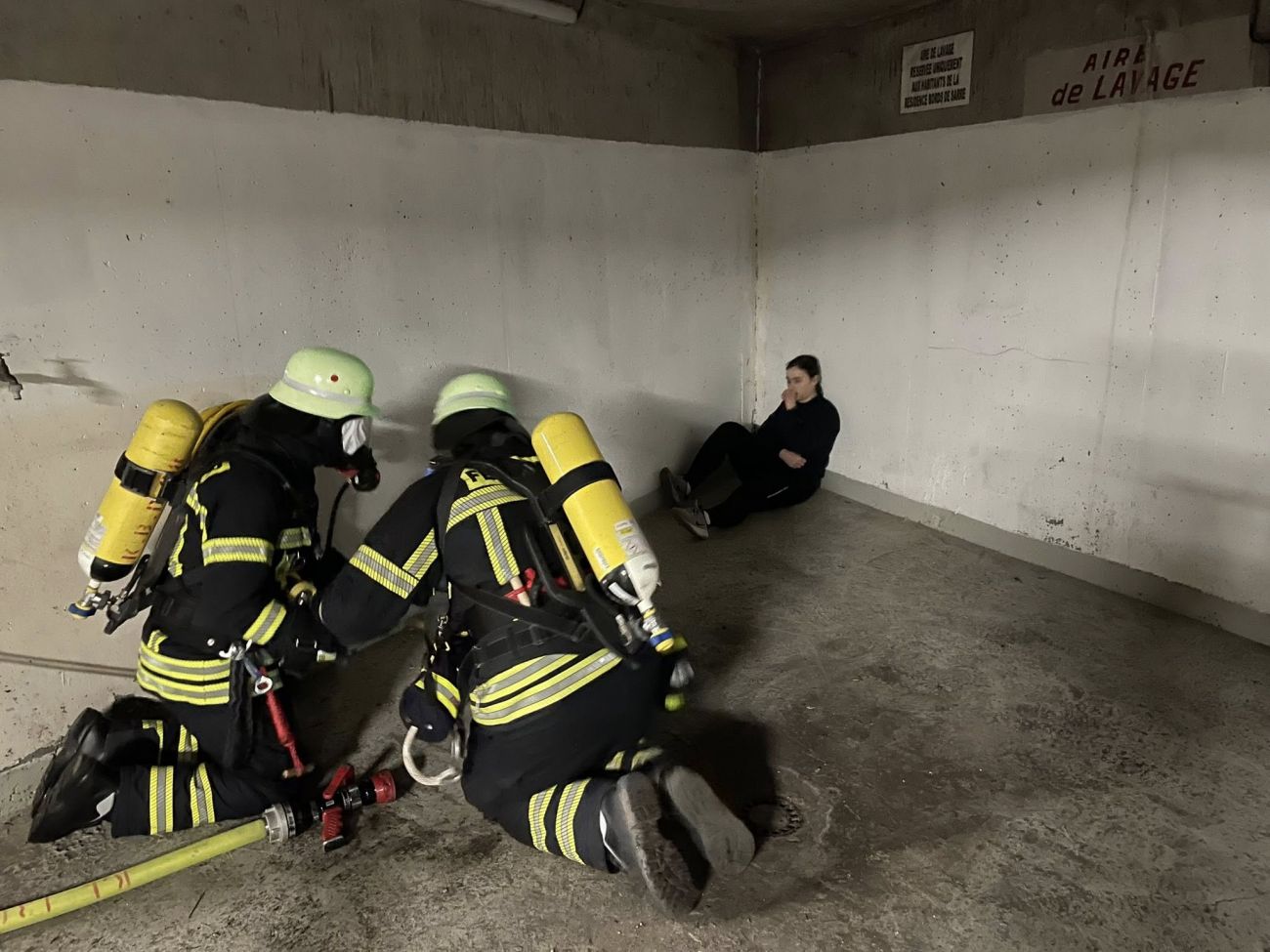 On simule un feu de véhicule dans un parking souterrain avec tout le parking qui est enfumé, et des victimes qui manquent à l’appel dans le parking. -Adjudant Yann Dehlinger, responsable de la formation des pompiers volontaires