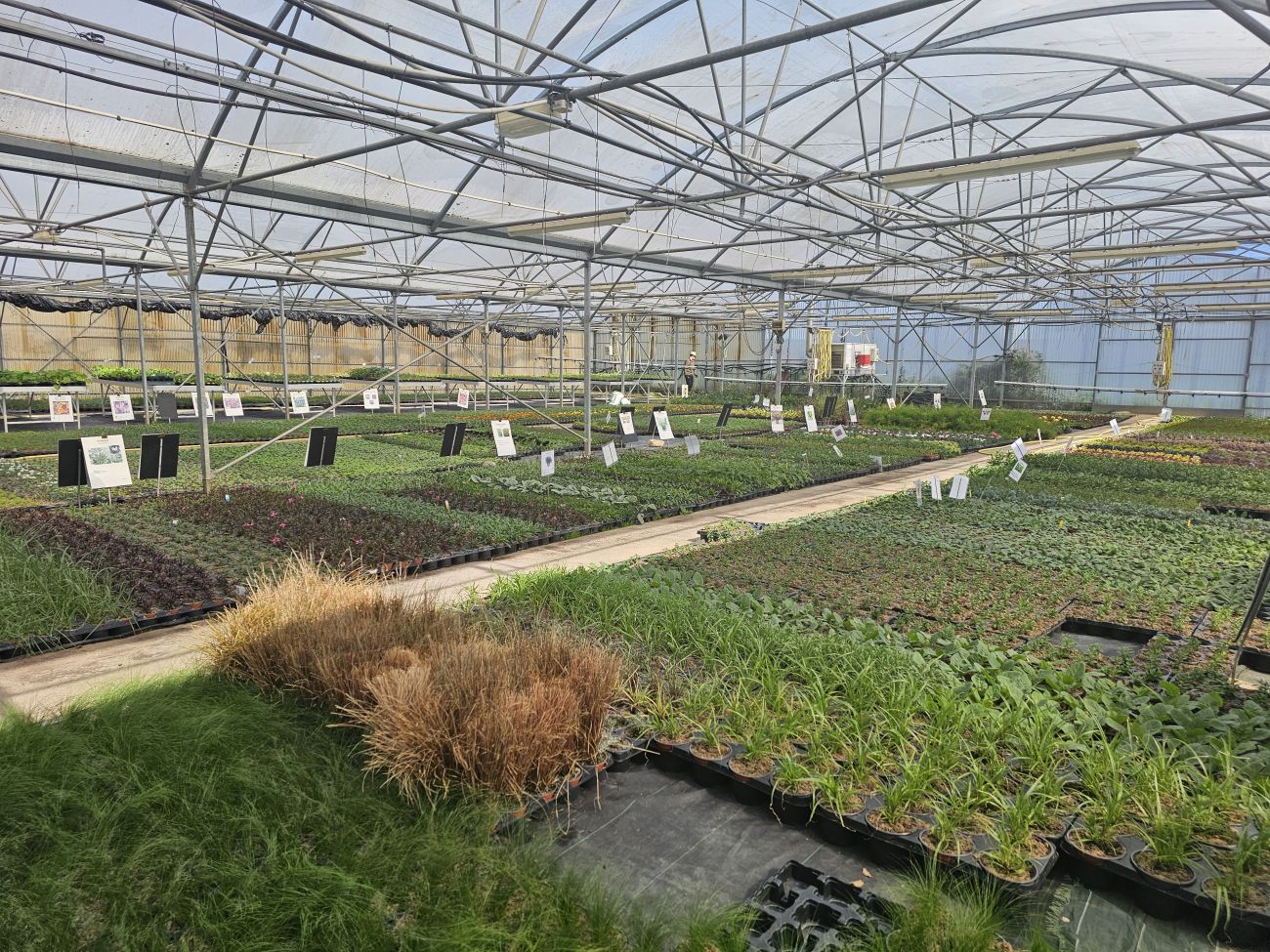 Vous voyez, ici, c’est la serre géraniums : les « balcon », les « zonal », les « Calliope ».