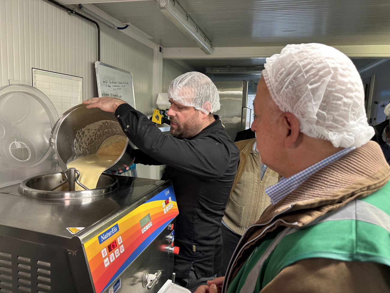 Une fois le mélange effectué, Richard Fouchs, le chef d’exploitation, le fait couler dans la machine qui va préparer la glace.