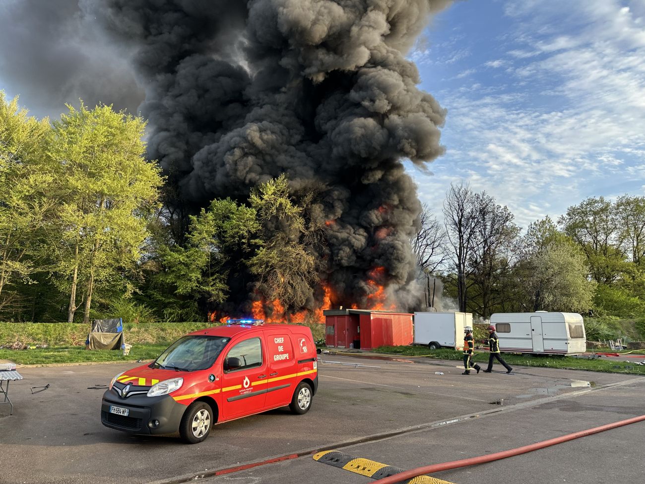 Une partie de l’aire des gens du voyage a été évacuée pour plus de sécurité. L'origine du feu est toujours inconnue pour le moment.