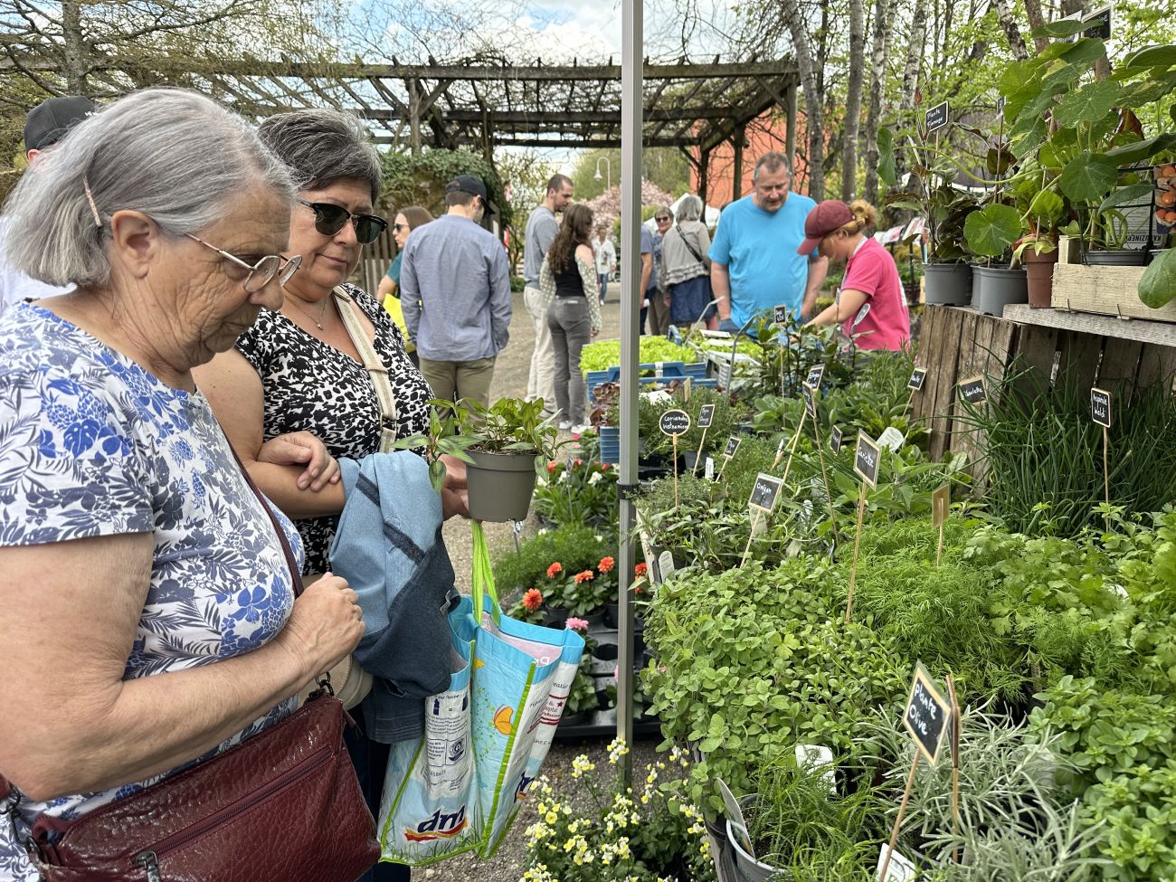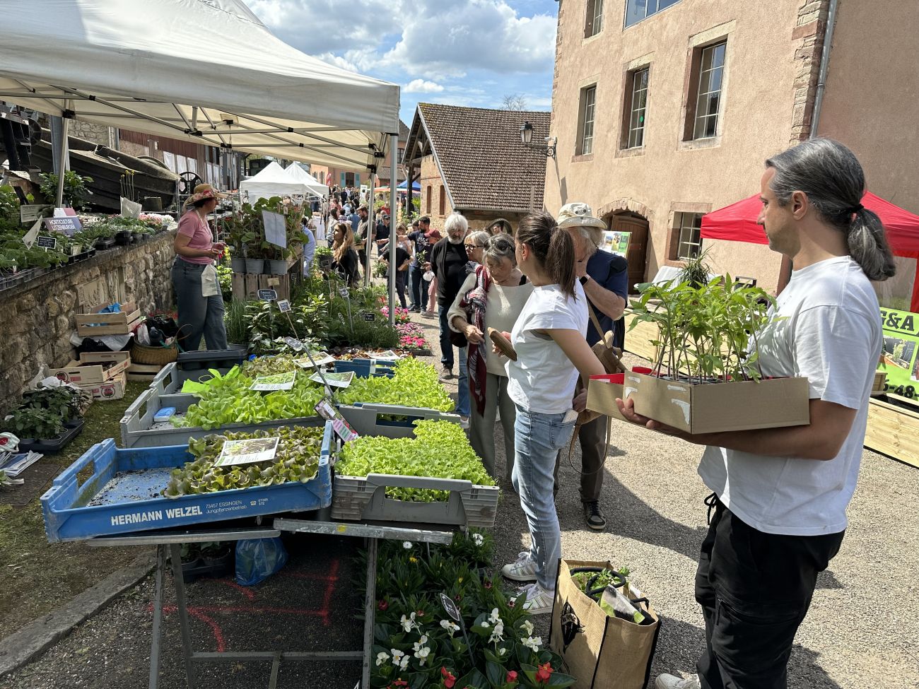 Ici, on fait ses courses et on prépare le jardin. Les plantes aromatiques et les plants de légumes sont très prisés. Sabine a déjà les mains pleines.