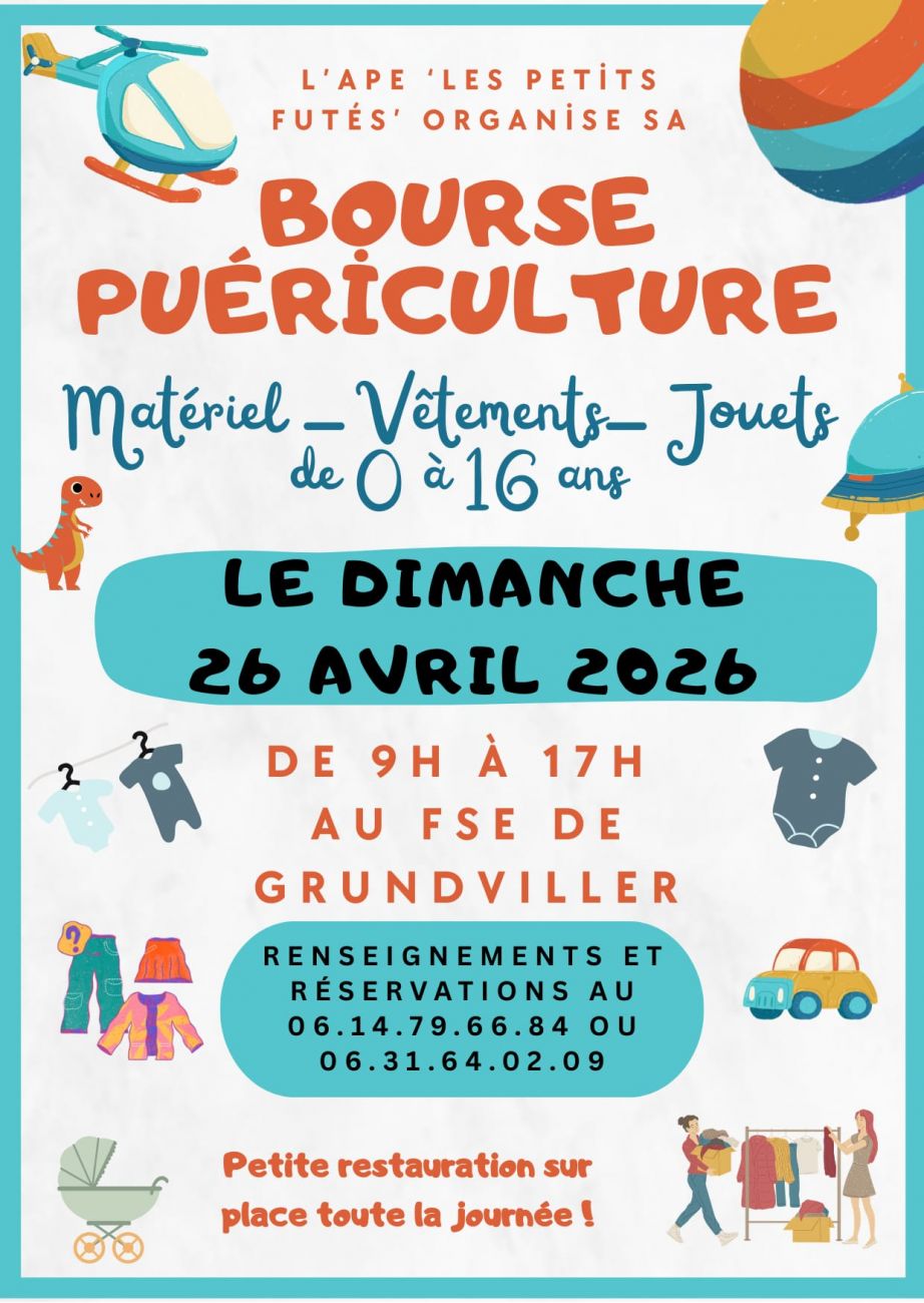 De 9h à 17h rendez-vous ce dimanche au FSE de Grundviller pour une bourse puériculture. L’entrée est gratuite et la restauration sur place.