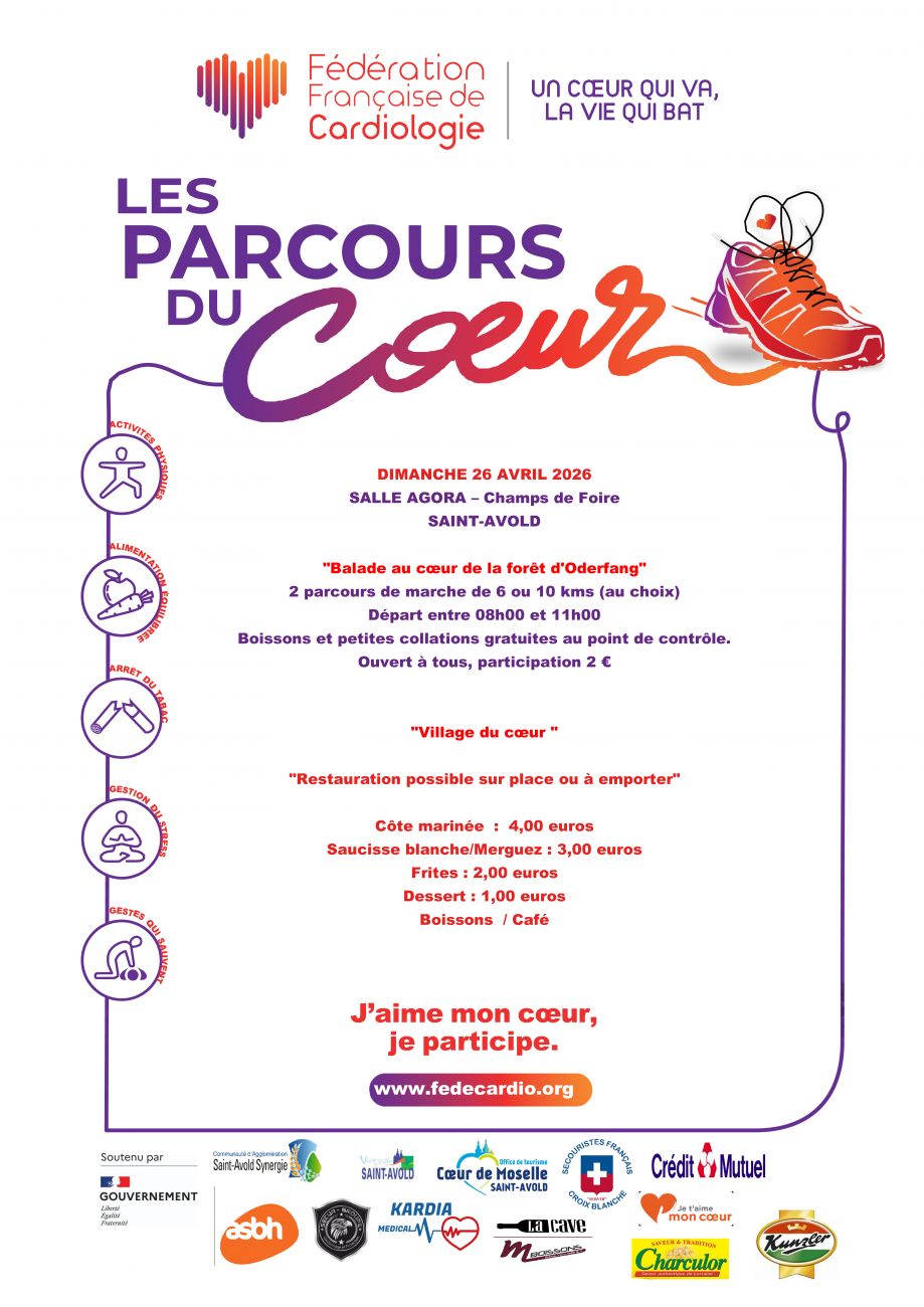 Une marche de la santé est organisée ce dimanche à Spicheren de 7h30 à 11h. Rendez-vous à la salle polyvalente pour le départ de 2 circuits de 7km et 13km. Les inscriptions sont au prix de 2 euros et sont ouvertes en ligne et au Carrefour Market jusqu’au 26 avril inclus. Le repas sur réservation est à 14 euros.